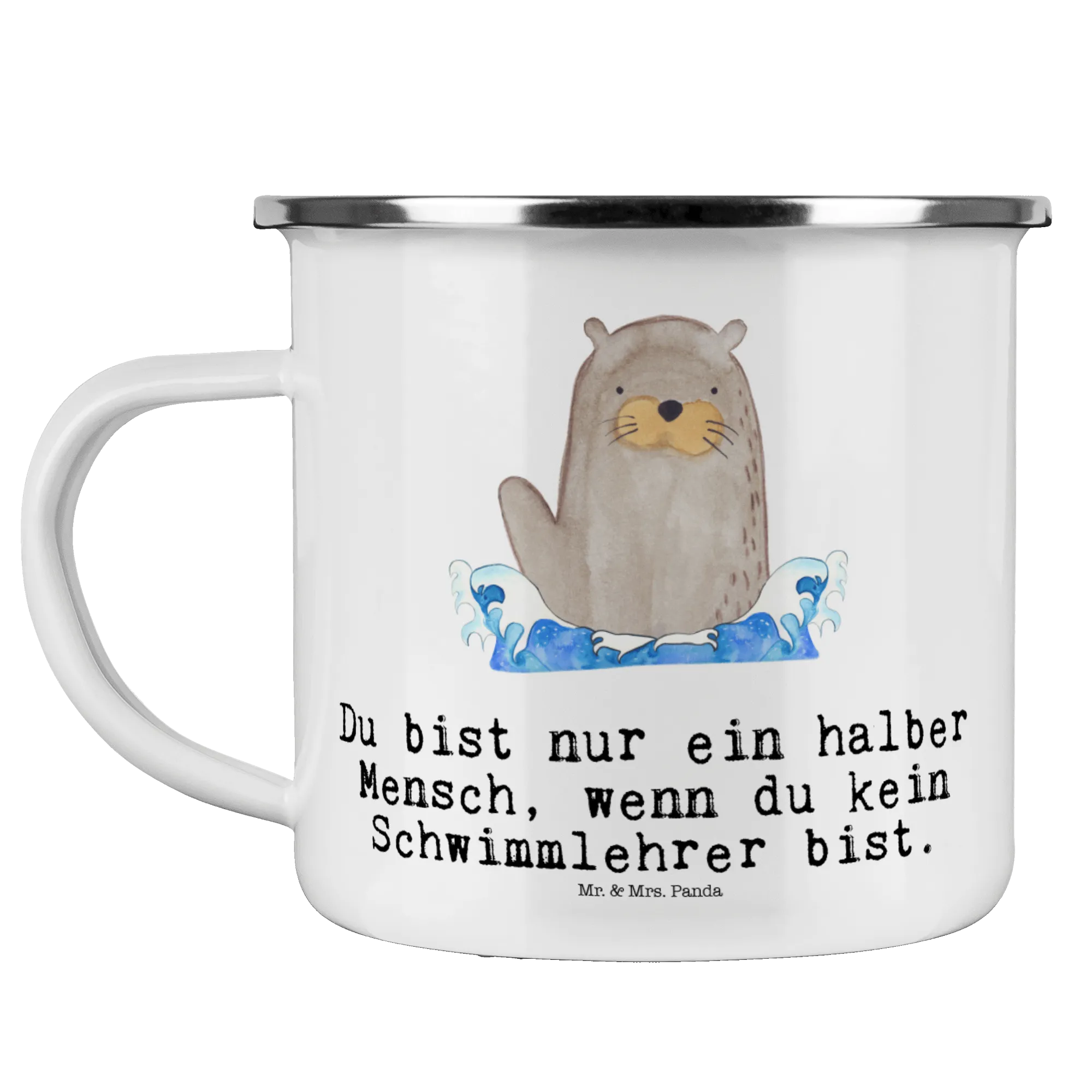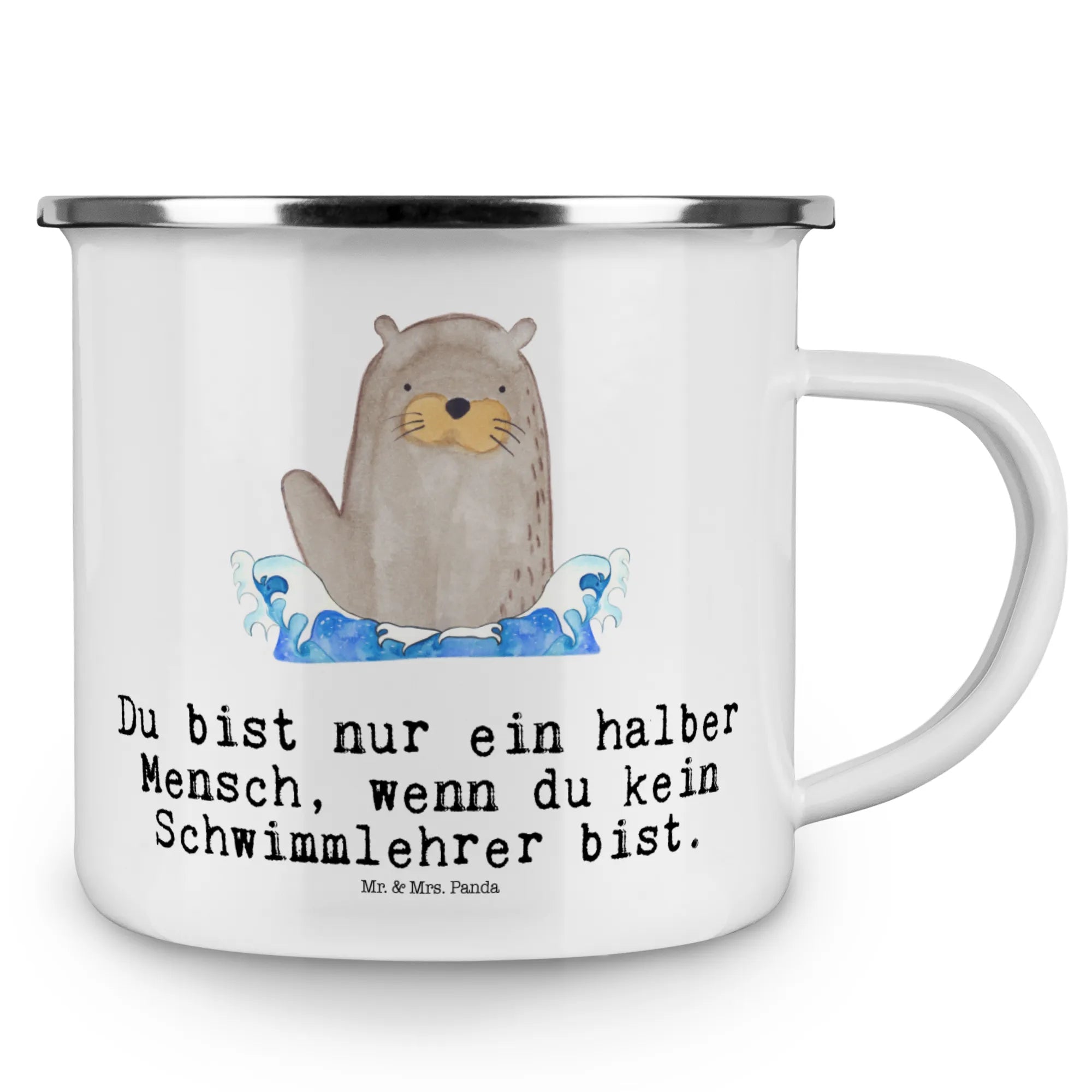 Mit dem Spruch "Du bist nur ein halber Mensch, wenn du kein Schwimmlehrer bist" wird sie zum absoluten Hingucker und sorgt für gute Laune. Ideal als Geschenk zum Berufsabschied, beim Jubiläum oder einfach um Danke zu sagen – diese Emaille Tasse wird jedem Schwimmlehrer ein Lächeln ins Gesicht zaubern.