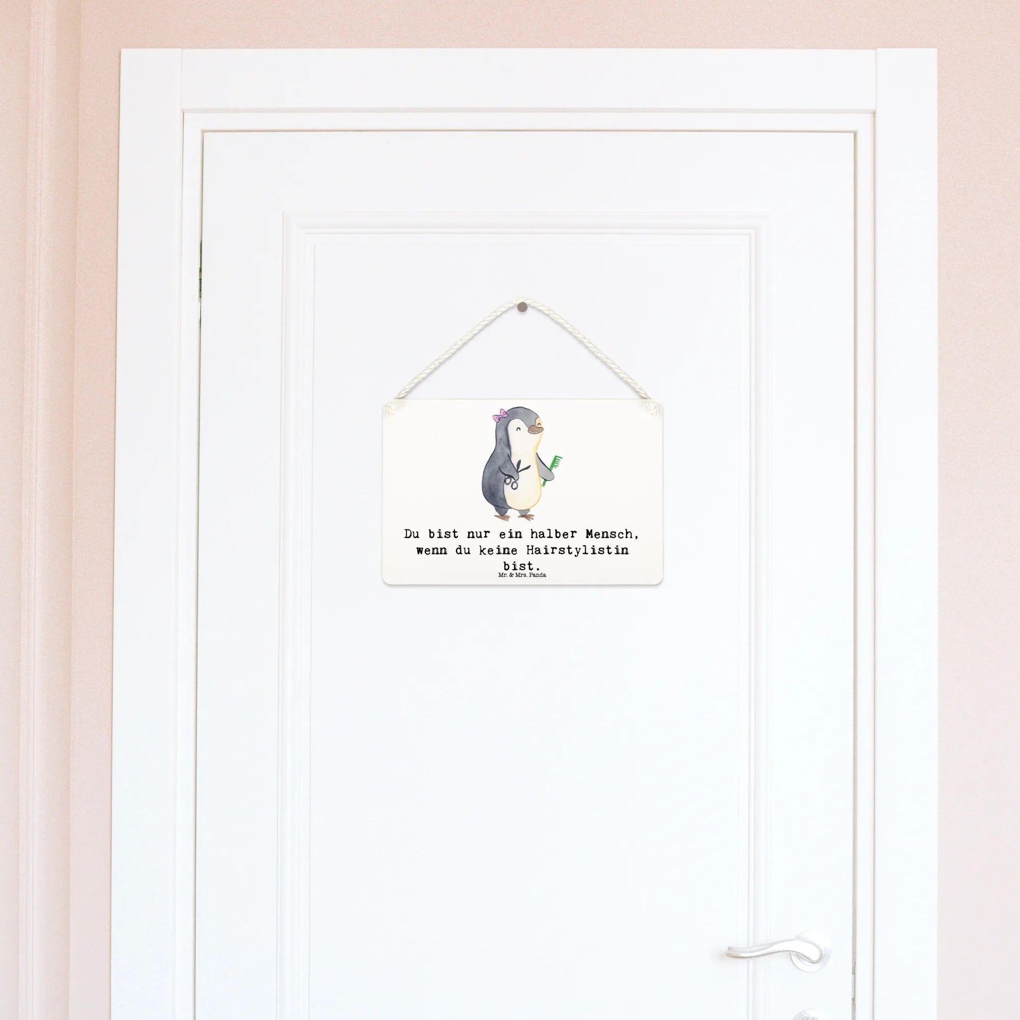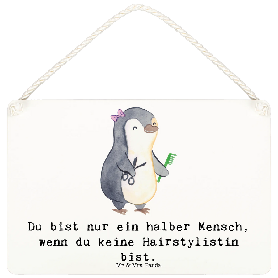 Egal, ob zum Berufsabschluss, zum Jubiläum oder einfach nur als nette Geste für eine Kollegin – dieses Schild bringt ein Lächeln ins Gesicht! Mit dem Spruch "Du bist nur ein halber Mensch, wenn du keine Hairstylistin bist." wird jeder Besucher sofort auf die kreative Ader der Hairstylistin aufmerksam.