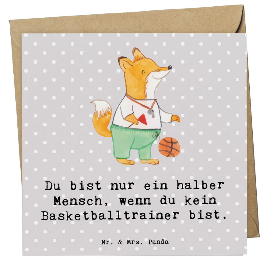 Die Deluxe Karte mit dem liebevollen Motiv "Basketballtrainer mit Herz" von Mr. & Mrs. Panda ist das perfekte Geschenk für alle Basketballfans und Trainer. Ob zum Geburtstag, zur Hochzeit oder einfach um Danke zu sagen, diese Karte ist vielseitig einsetzbar. Mit einem süßen Fuchs, der den Basketballtrainer repräsentiert, und dem Spruch "Du bist nur ein halber Mensch, wenn du kein Basketballtrainer bist", wird jedes Herz höher schlagen.