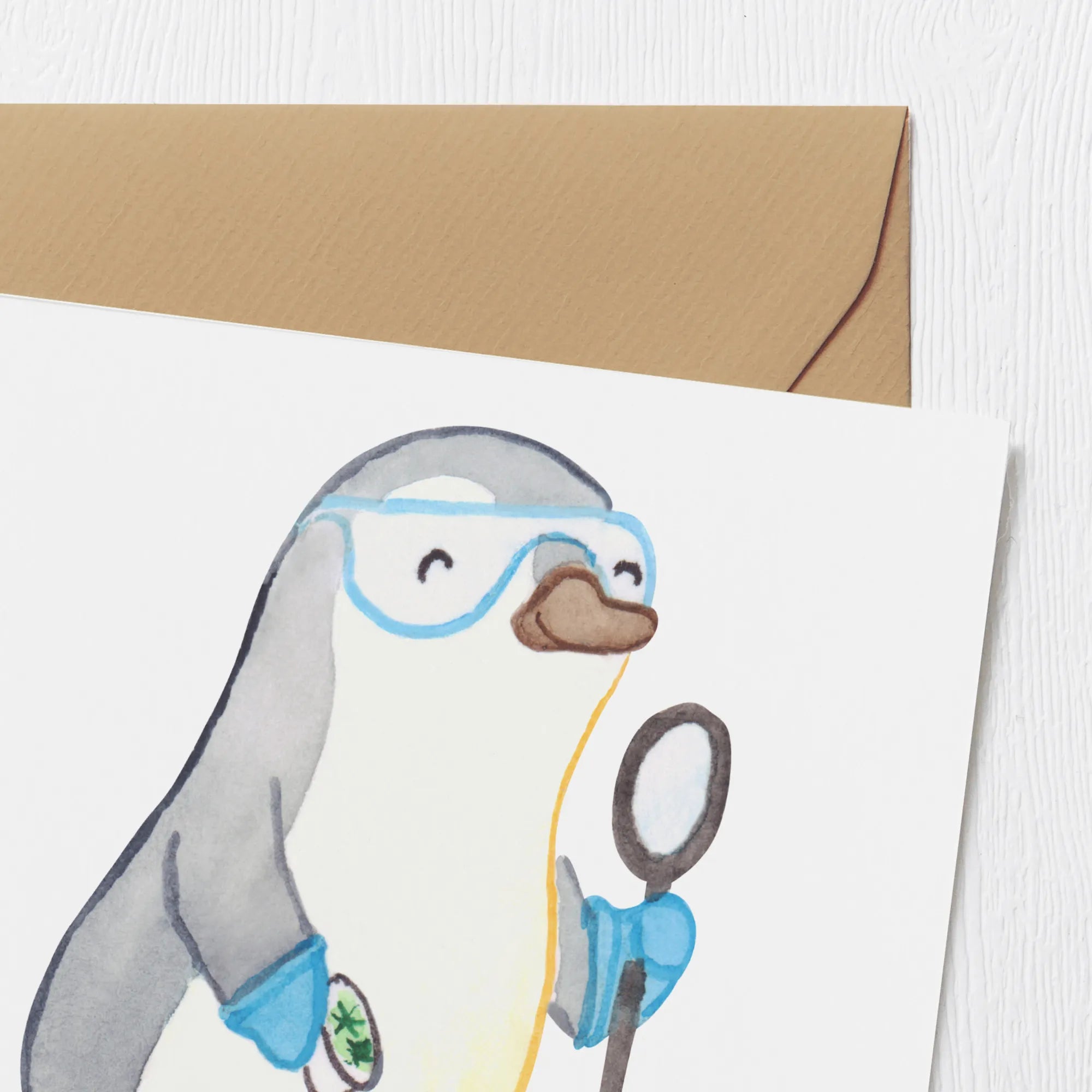 Lass den kleinen Pinguin, der in einem Labor steht, deine Wertschätzung für all die Biologen zeigen, die mit Leidenschaft forschen und entdecken. Die matte Innenseite der Karte ist perfekt für individuelle Beschriftungen, sodass du deine ganz persönlichen Wünsche übermitteln kannst. Sende diese Karte zur Geburtstagsfeier, zur Hochzeit, zum Jubiläum oder einfach nur, um Danke zu sagen.