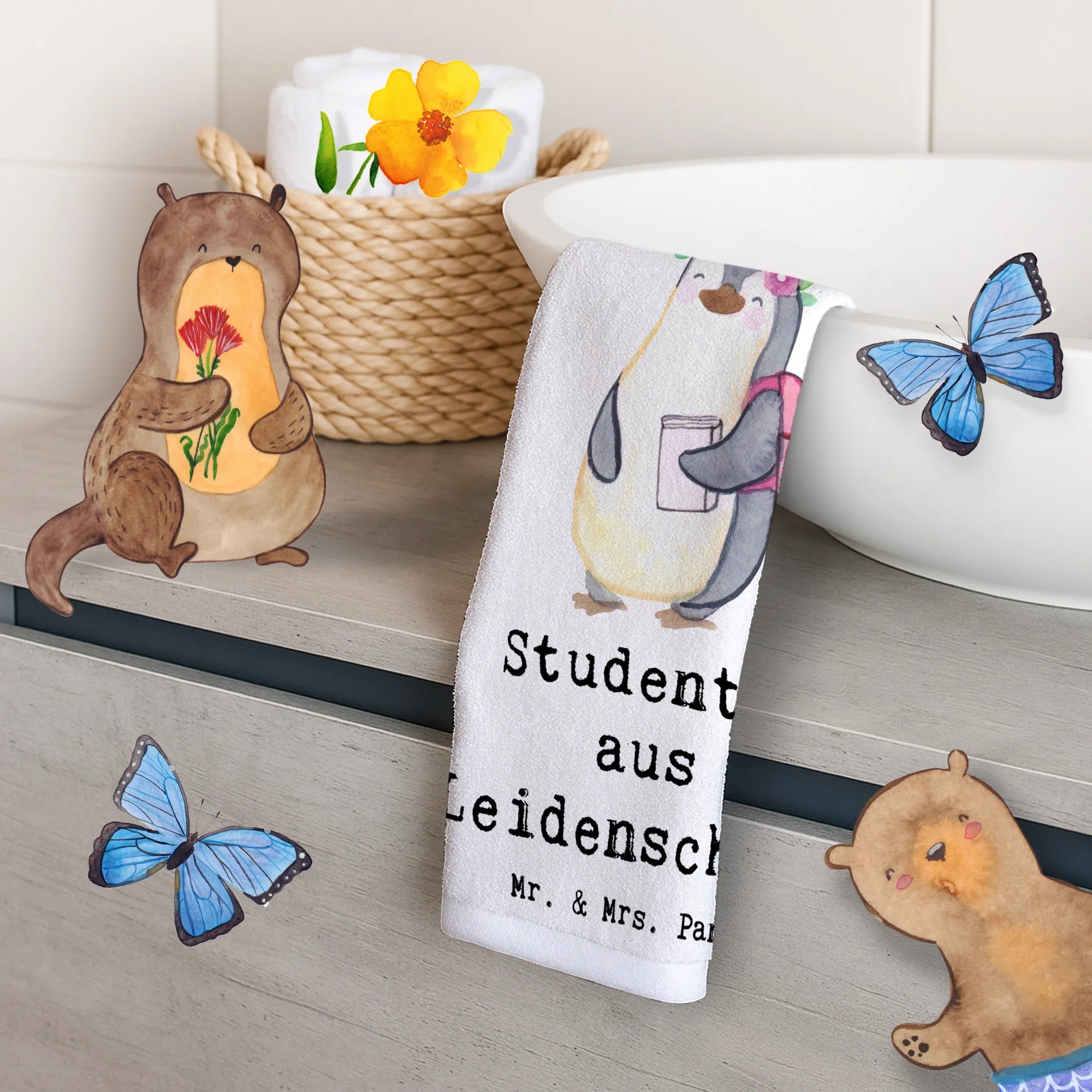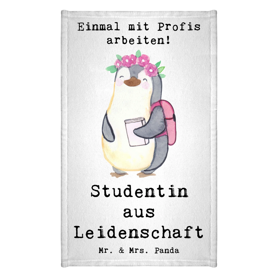 Das Gästetuch "Studentin aus Leidenschaft" von Mr. & Mrs. Panda ist das perfekte Geschenk für alle, die das Leben als Studentin oder Student in vollen Zügen genießen. Mit einem bezaubernden, handgezeichneten Motiv eines süßen Pinguins, der mit einem Rucksack auf dem Rücken zur Uni marschiert, bringt dieses Handtuch nicht nur Farbe in dein Badezimmer, sondern auch ein Lächeln in dein Gesicht.