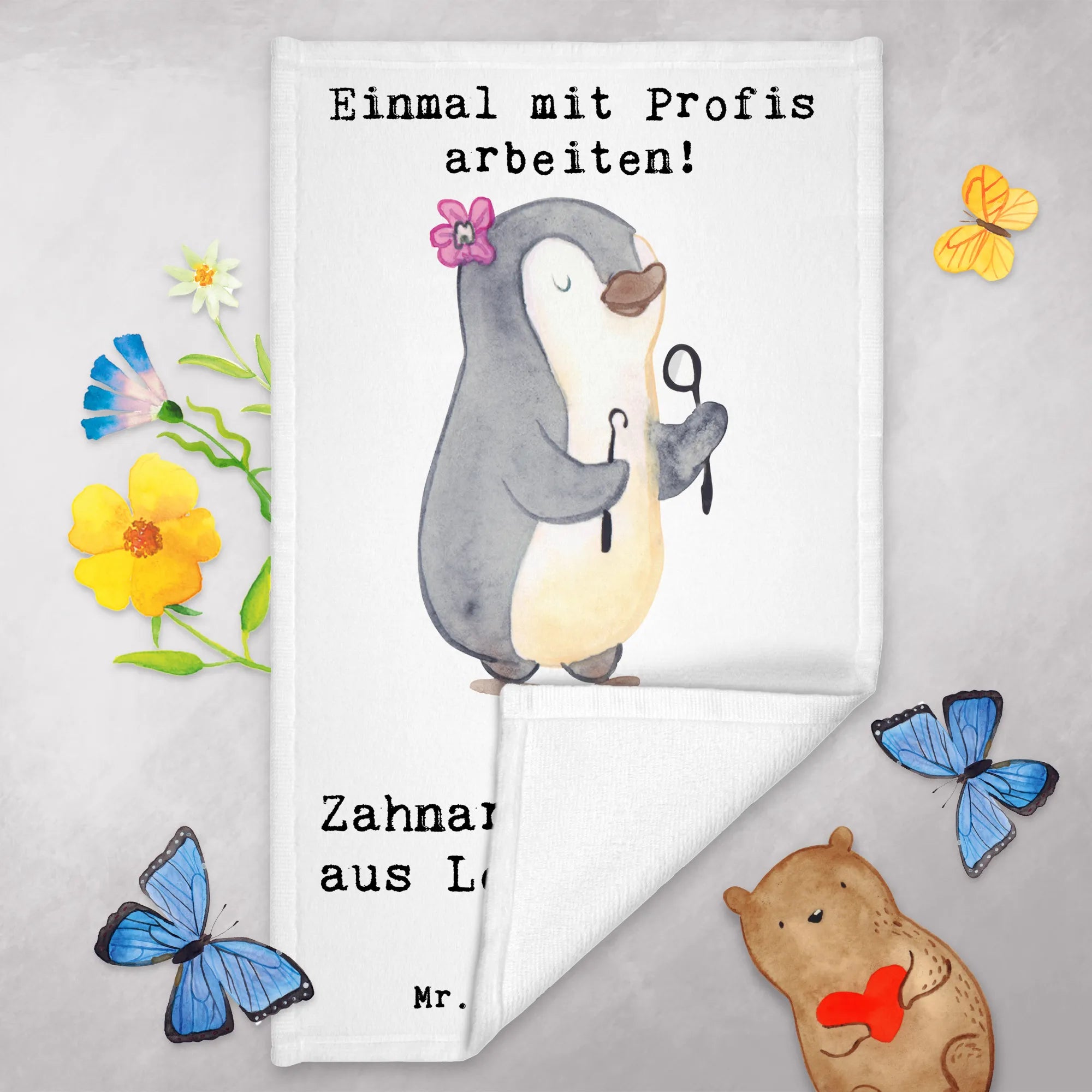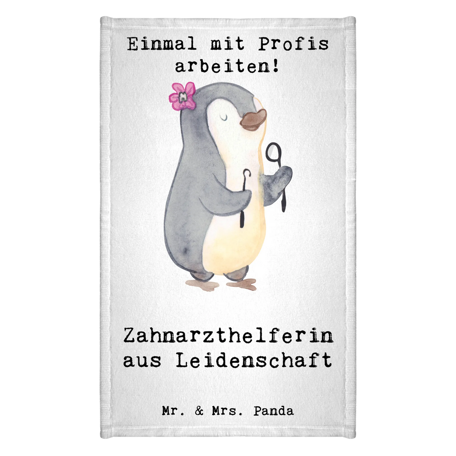 Das wunderschöne Gästehandtuch "Zahnarzthelferin aus Leidenschaft" von Mr. & Mrs. Panda ist das perfekte Geschenk für alle, die in der zahnmedizinischen Branche tätig sind oder einfach das Besondere lieben.