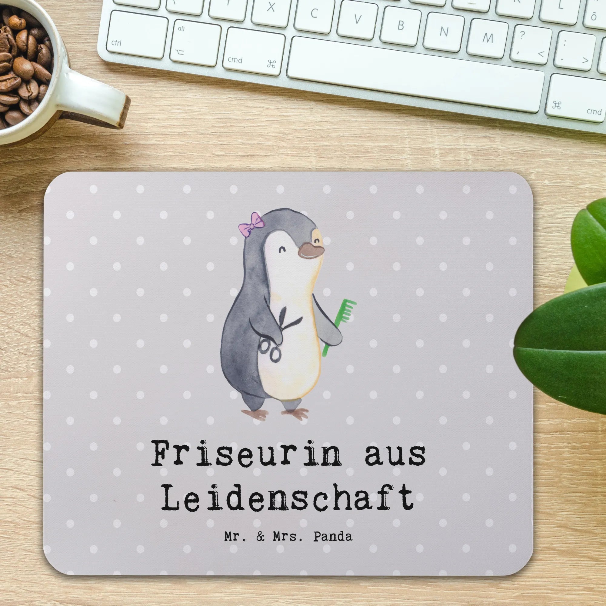 Das Mauspad "Friseurin aus Leidenschaft" von Mr. & Mrs. Panda ist das perfekte Geschenk für alle Haarstylisten und Frisöre, die ihre Arbeit mit Herz und Seele leben.