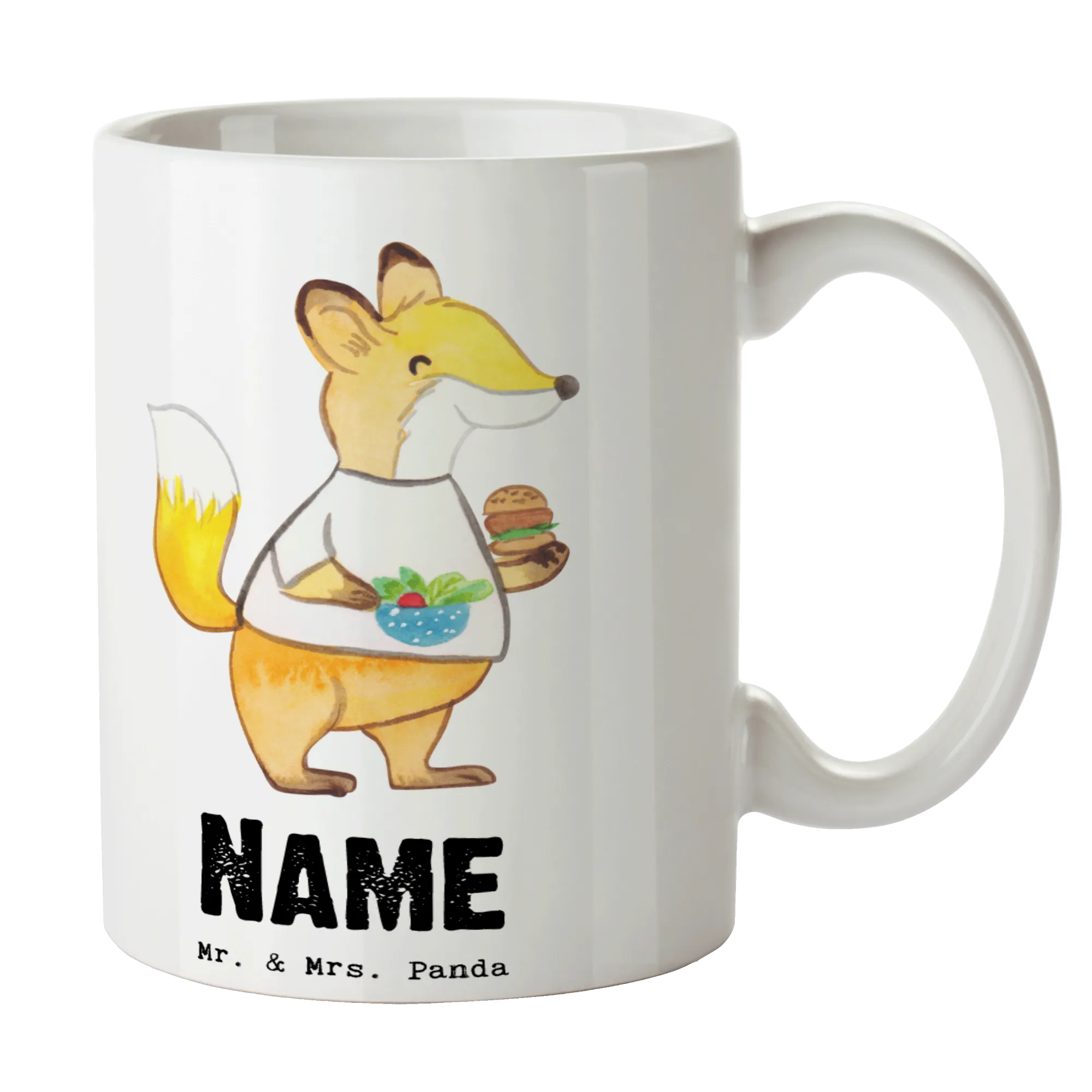 Die personalisierte Tasse "Systemgastronom mit Herz" von Mr. & Mrs. Panda ist das perfekte Geschenk für alle, die die Systemgastronomie lieben! Diese wunderschöne, spülmaschinenfeste Keramiktasse wird mit viel Liebe und einem ganz besonderen Motiv gestaltet, das einen süßen Fuchs zeigt, der stolz einen frisch zubereiteten Burger und einen frischen Salat präsentiert.