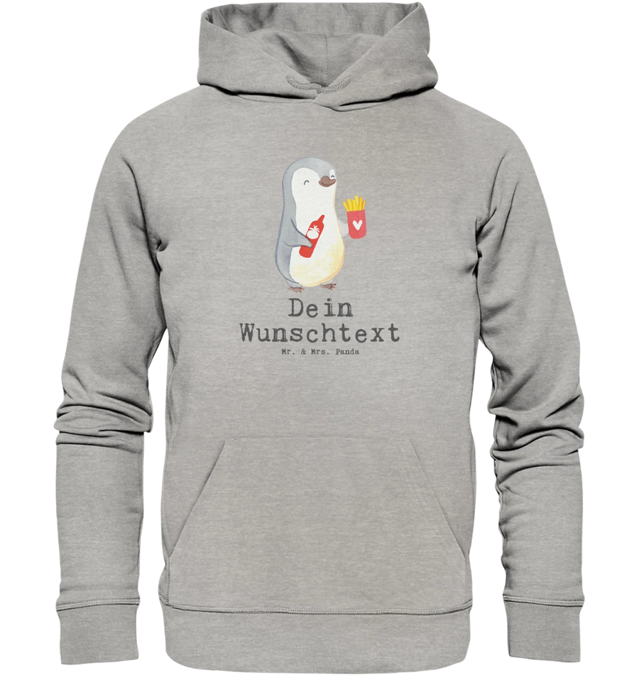 Entdecke den personalisierten Hoodie "Imbissverkäufer mit Herz" aus der wundervollen Berufe Kollektion von Mr. & Mrs. Panda! Dieser Kapuzenpullover ist nicht nur super stylisch, sondern auch unglaublich weich und bequem, gefertigt aus 85 % Bio-Baumwolle und 15 % recyceltem Polyester.