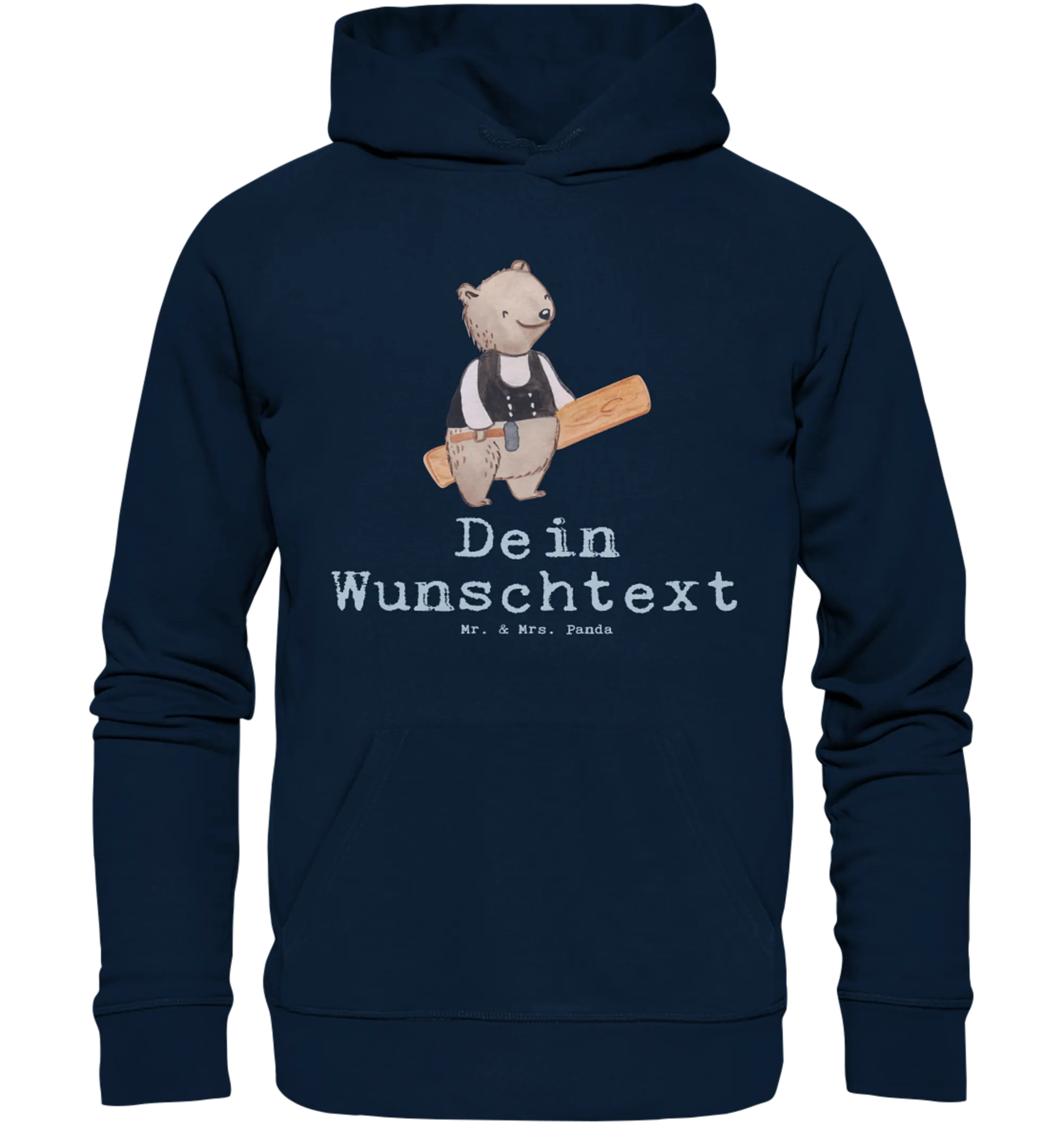 Auf der Vorderseite prangt unser einzigartiges Motiv: Ein süßer Bär in Zimmermannskluft, der mit einem Hammer in der einen Hand und einem Holzbrett in der anderen Hand strahlt. Doch das ist noch nicht alles! Du kannst den Hoodie mit deinem persönlichen Wunschtext oder Namen individualisieren. Somit wird er zu einem Unikat, das nicht nur Freude bereitet, sondern auch eine wunderbare Erinnerung darstellt.