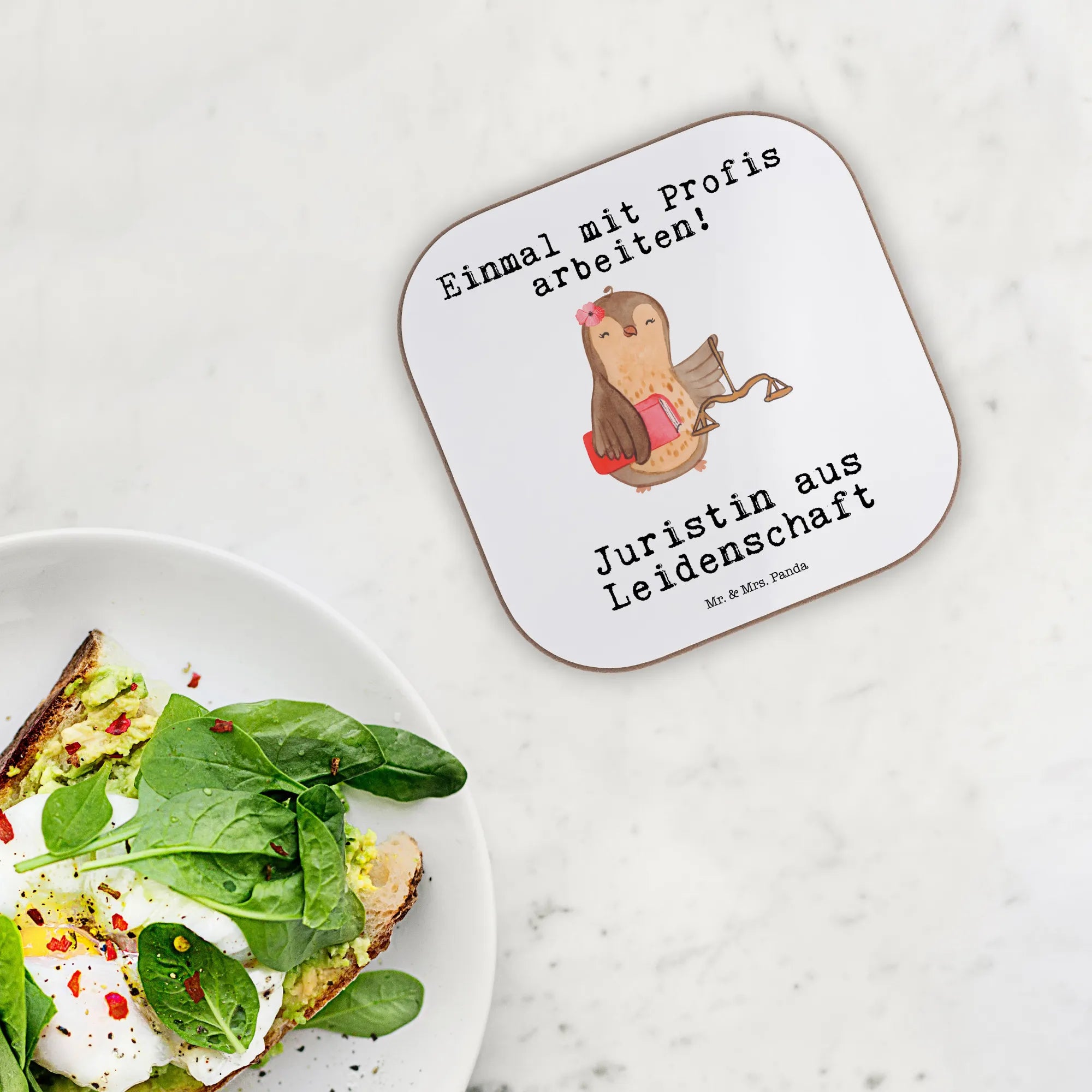 Entdecke den perfekten Untersetzer für ambitionierte Juristinnen - unser wunderschöner quadratischer Untersetzer "Juristin aus Leidenschaft" von Mr. & Mrs. Panda.