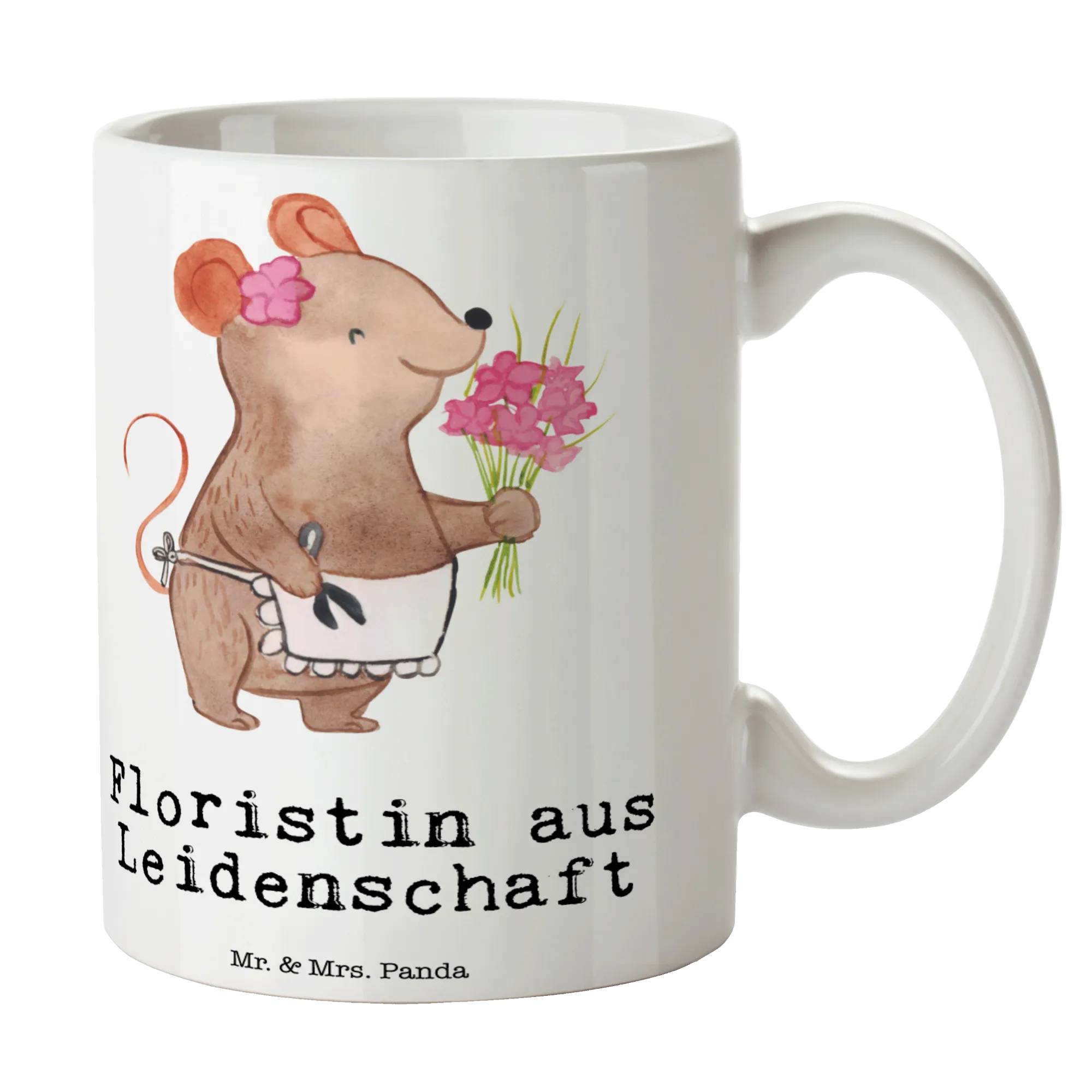 Die Tasse "Floristin aus Leidenschaft" von Mr. & Mrs. Panda ist das perfekte Geschenk für alle, die lieben, was sie tun! Diese wunderschöne Kaffeetasse aus hochwertiger Keramik präsentiert ein niedliches Motiv einer kleinen Maus, die stolz einen bunten Blumenstrauß in den Händen hält.