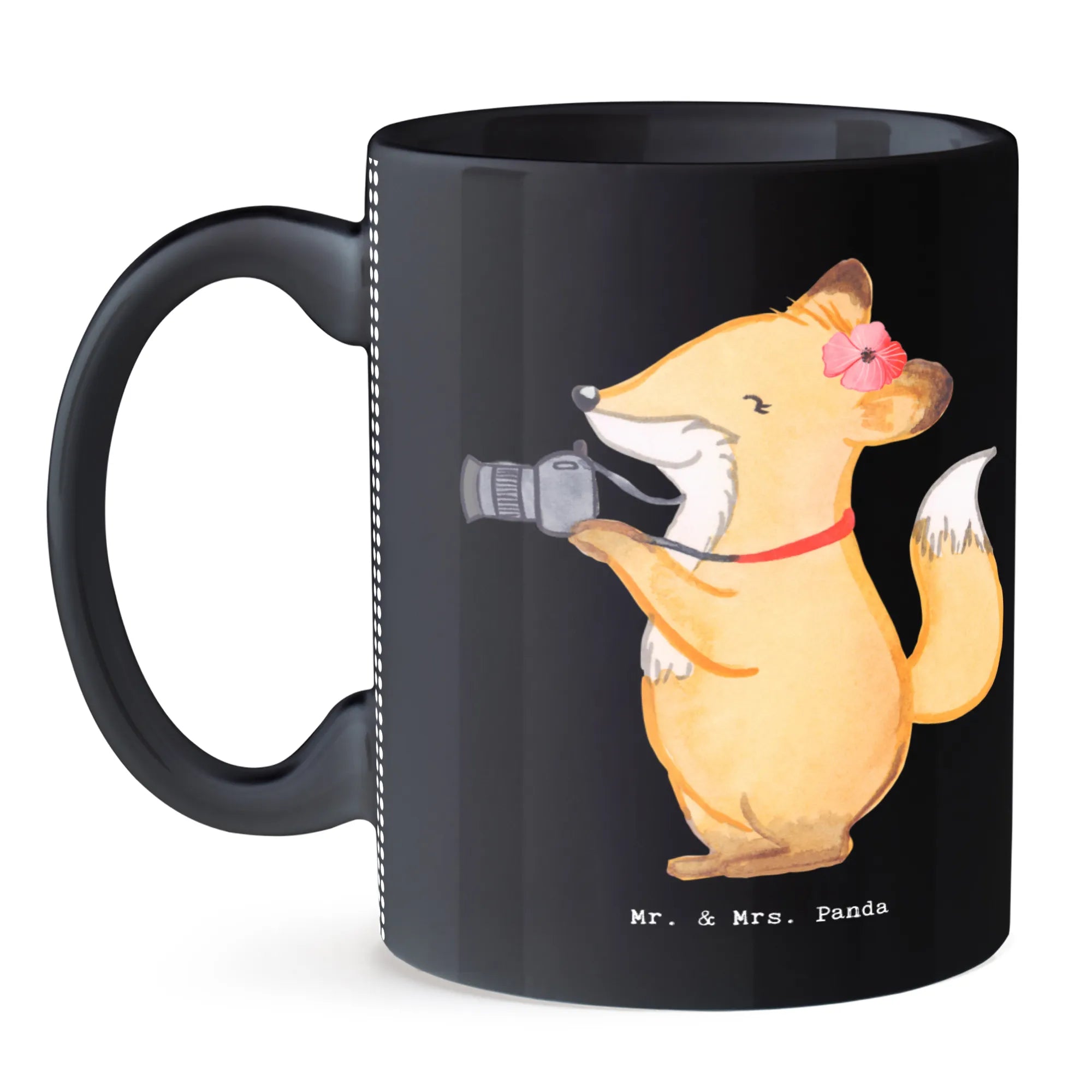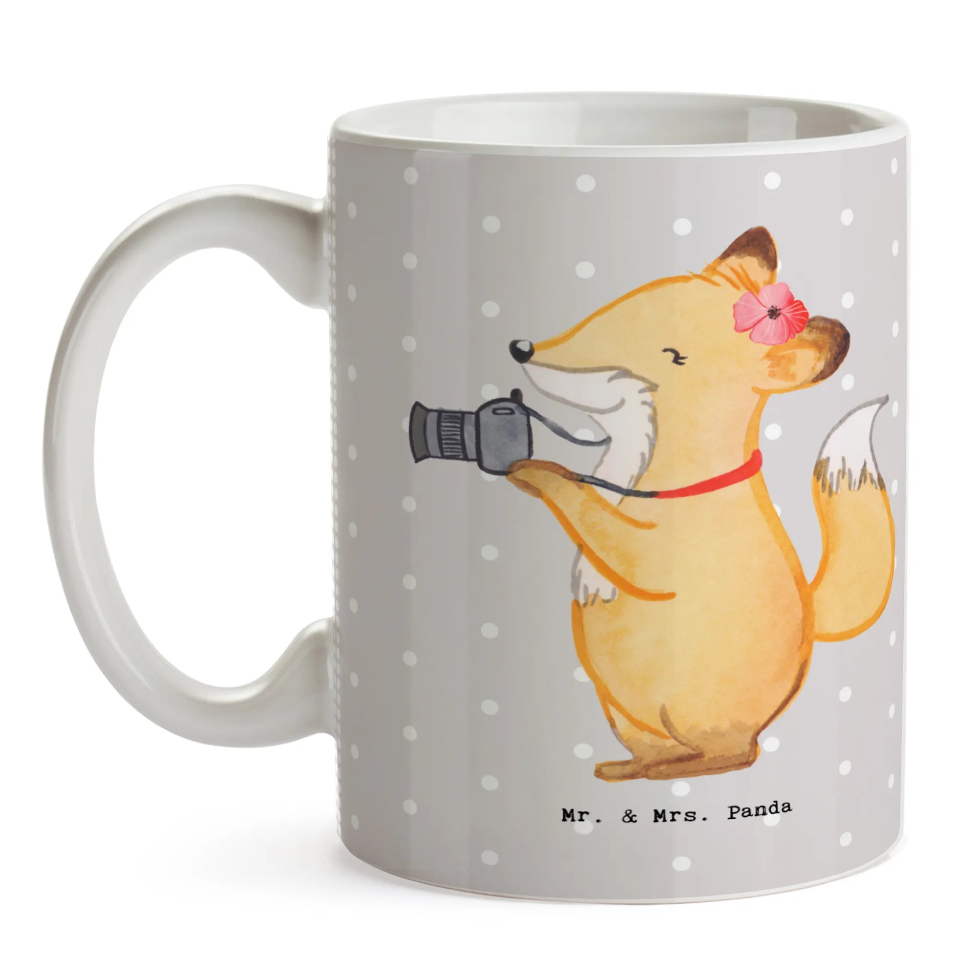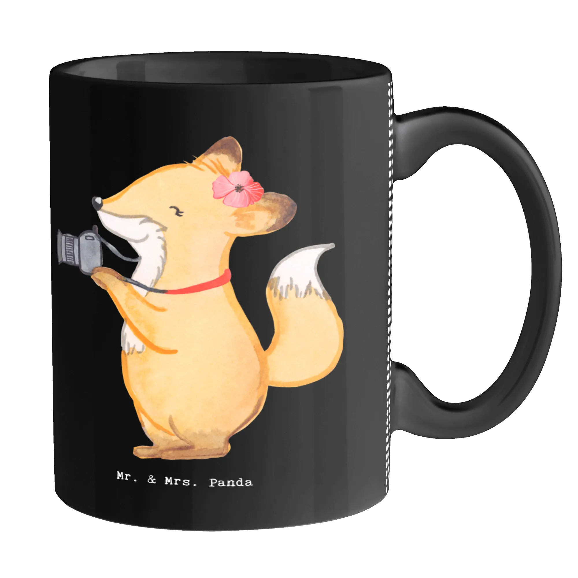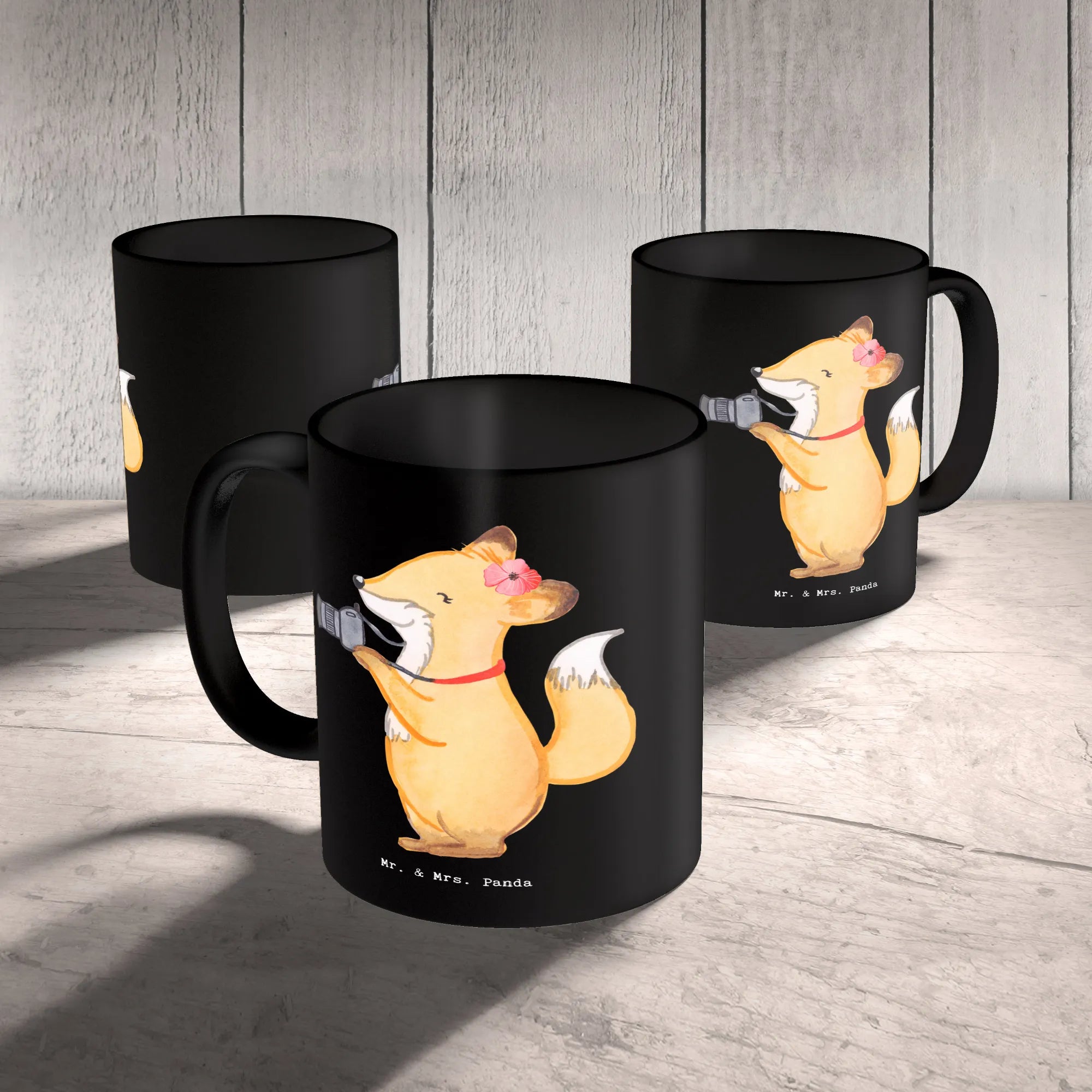 Die Tasse "Fotografin mit Herz" von Mr. & Mrs. Panda ist das perfekte Geschenk für jeden, der die Leidenschaft zur Fotografie teilt – ob Profi-Fotograf oder Hobbyfotografin. Mit ihrem charmanten Motiv, das einen süßen, weiblichen Fuchs mit einer Kamera zeigt, ist diese Tasse nicht nur ein praktisches Alltagsobjekt, sondern auch ein Ausdruck der Liebe zur Fotografie. Die hochwertige Keramik sorgt dafür, dass die Tasse lange schön bleibt – sie ist mikrowellengeeignet und spülmaschinenfest, sodass sie bis zu 2000 Waschgänge problemlos übersteht.