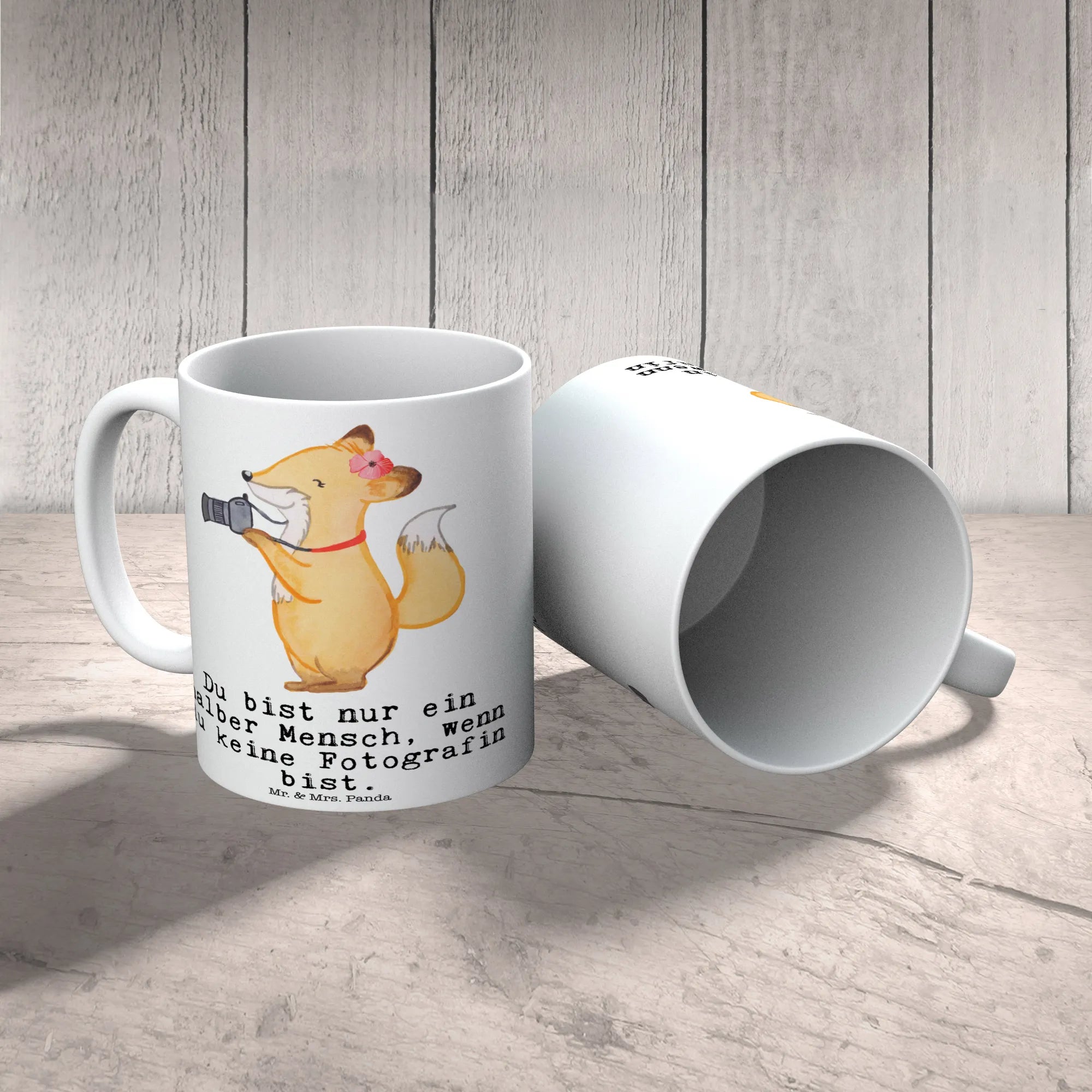 Suchst du das perfekte Geschenk für die leidenschaftliche Fotografin in deinem Leben? Die Tasse "Fotografin mit Herz" aus der kreativen Berufe Kollektion von Mr. & Mrs. Panda ist genau das richtige!