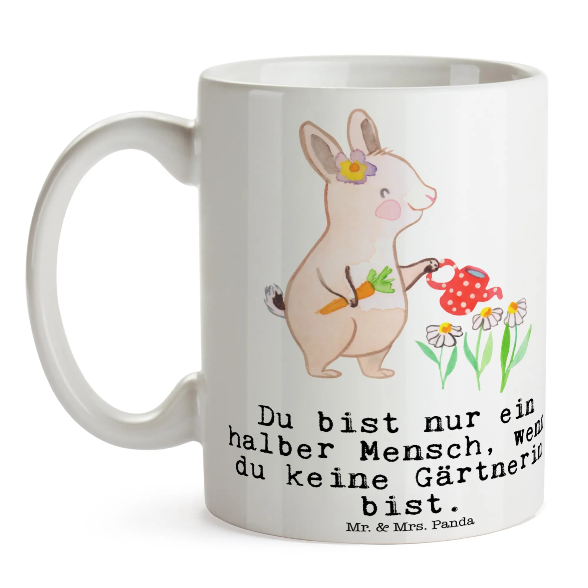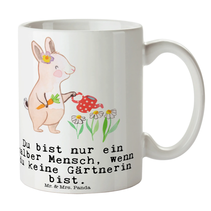 Mit dem herzlichen Slogan "Du bist nur ein halber Mensch, wenn du keine Gärtnerin bist" spricht diese Tasse nicht nur absolute Gartenfans an, sondern macht auch deutlich, wie wichtig die Arbeit der Gärtnerinnen in unserer Gesellschaft ist. Ein echtes Must-Have für jede Damenkreisgruppe oder als Geschenk für die Kollegin im Büro, die immer den besten Garten hat.
