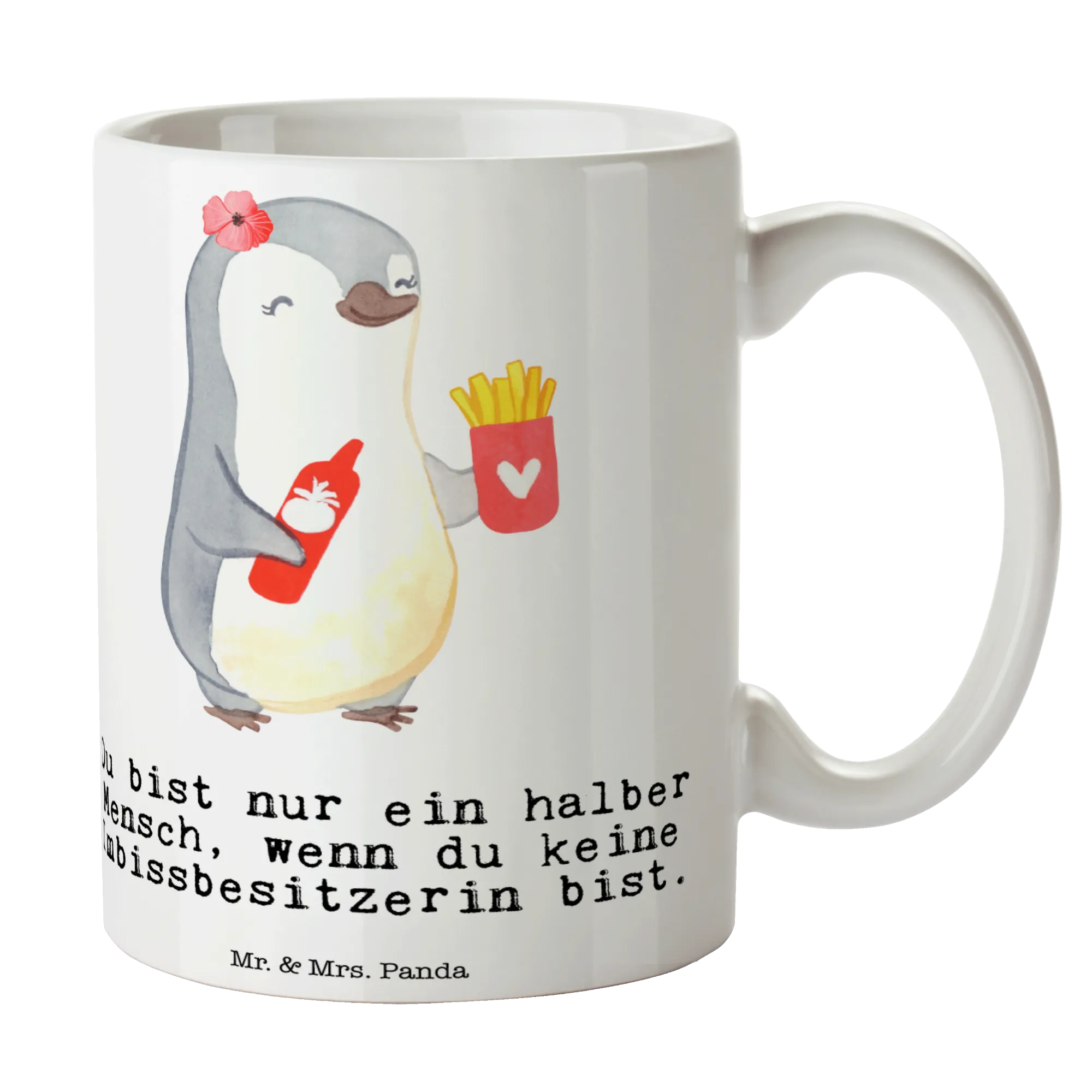 Tasse Imbissbesitzerin mit Herz Tasse, Keramiktasse, Tasse mit Zitaten, Porzellantasse, Geschenktasse, Teetasse, Bürotasse, Tasse mit Motiven, Kaffeetasse, Beruf, Ausbildung, Jubiläum, Abschied, Rente, Kollege, Kollegin, Geschenk, Schenken, Arbeitskollege, Mitarbeiter, Firma, Danke, Dankeschön, Pommesverkäuferin, Imibissverkäuferin, Pommesliebe, Imbissbesitzerin