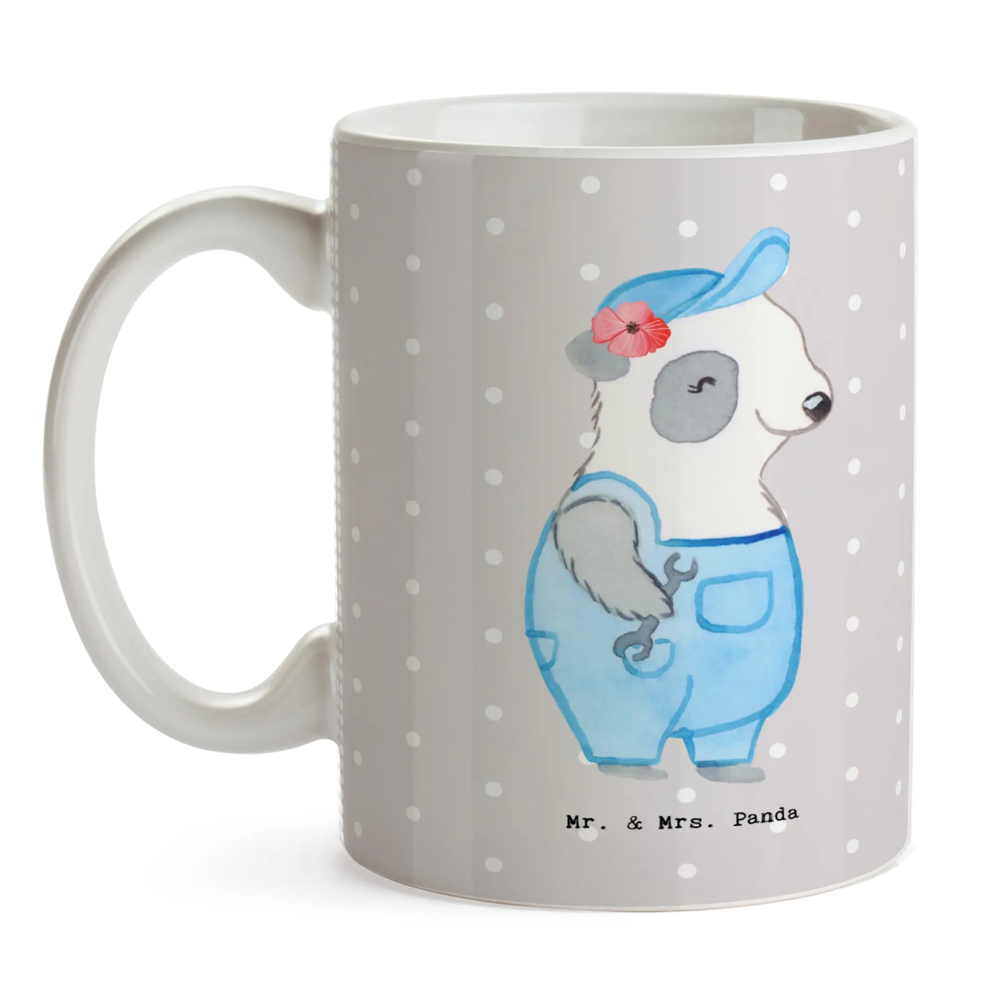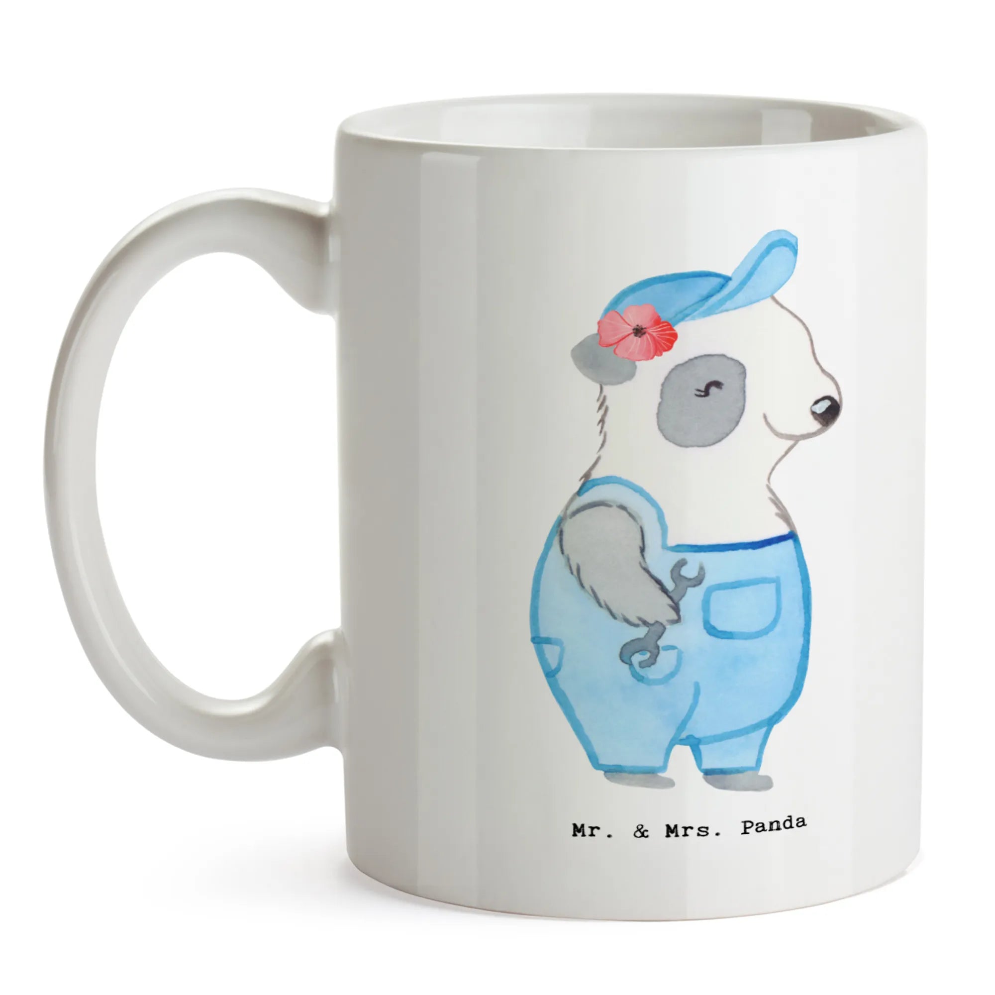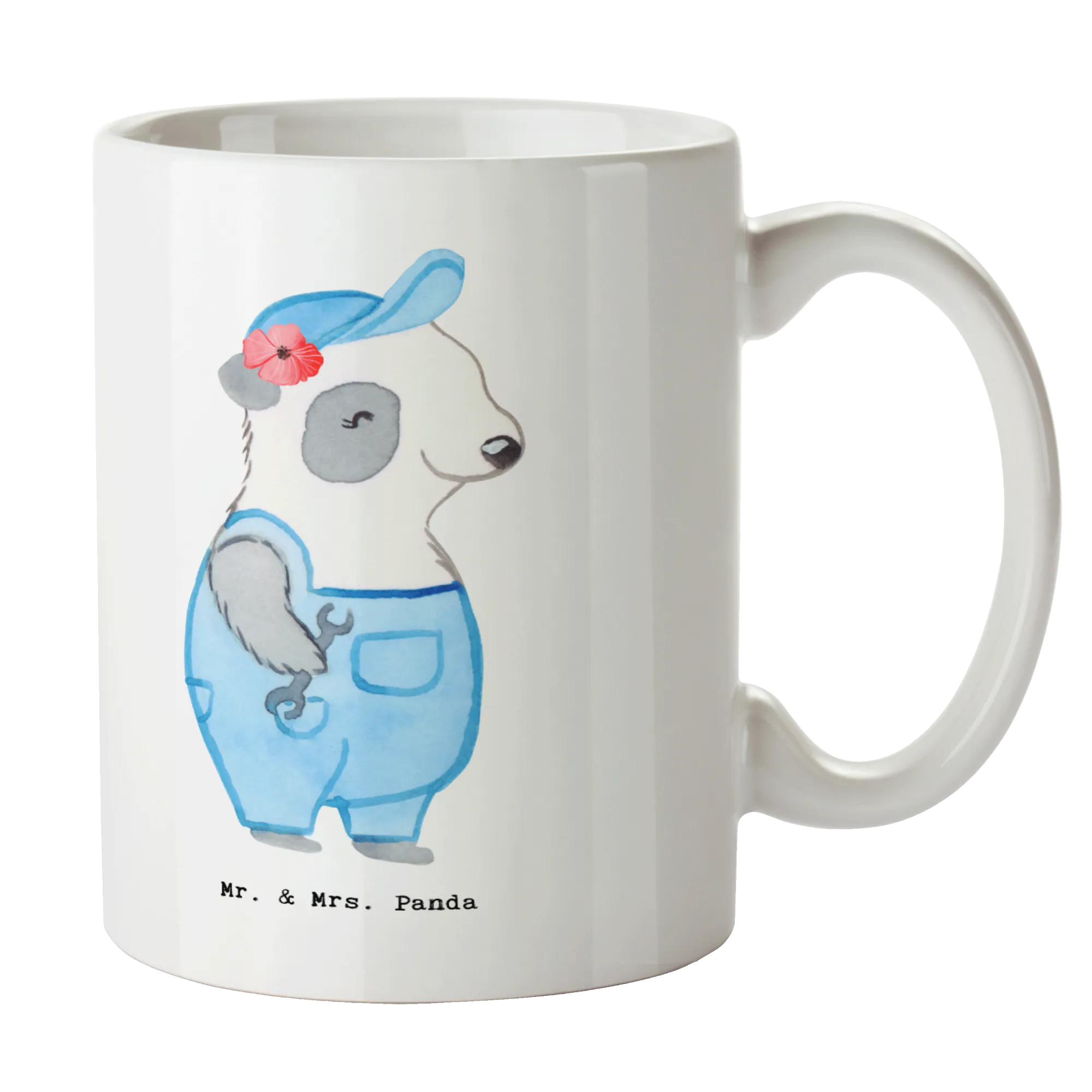 Die Tasse Klempnerin mit Herz von Mr. & Mrs. Panda ist das perfekte Geschenk für alle Handwerkerinnen und alle, die in ihrem beruflichen Alltag mit Leidenschaft und Herz einer Herausforderung begegnen. Diese wunderschöne Keramiktasse überzeugt nicht nur durch ihr ansprechendes Design, sondern auch durch ihre Funktionalität. Ob für einen Kaffee in der Werkstatt oder eine Tasse Tee nach einem langen Arbeitstag, die Tasse mit dem süßen, weiblichen Bären, der ein Pümpel und eine Zange in der Hand hält, ist immer ein treuer Begleiter. Sie zeigt die Liebe zur Arbeit und macht jeden Schluck zu einem kleinen Erlebnis.