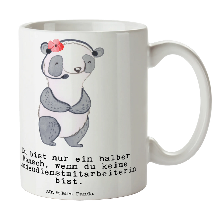 Mit dem fröhlichen Motiv eines Pandas, der mit einem Headset ausgestattet ist, und dem eingängigen Slogan "Du bist nur ein halber Mensch, wenn du keine Kundendienstmitarbeiterin bist", wird diese Tasse sicherlich ein Lächeln auf die Lippen deiner Kolleginnen und Kollegen zaubern. Denn was könnte besser sein, als den unermüdlichen Einsatz der Mitarbeiter im Kundenservice mit einem so liebevollen Geschenk zu würdigen?