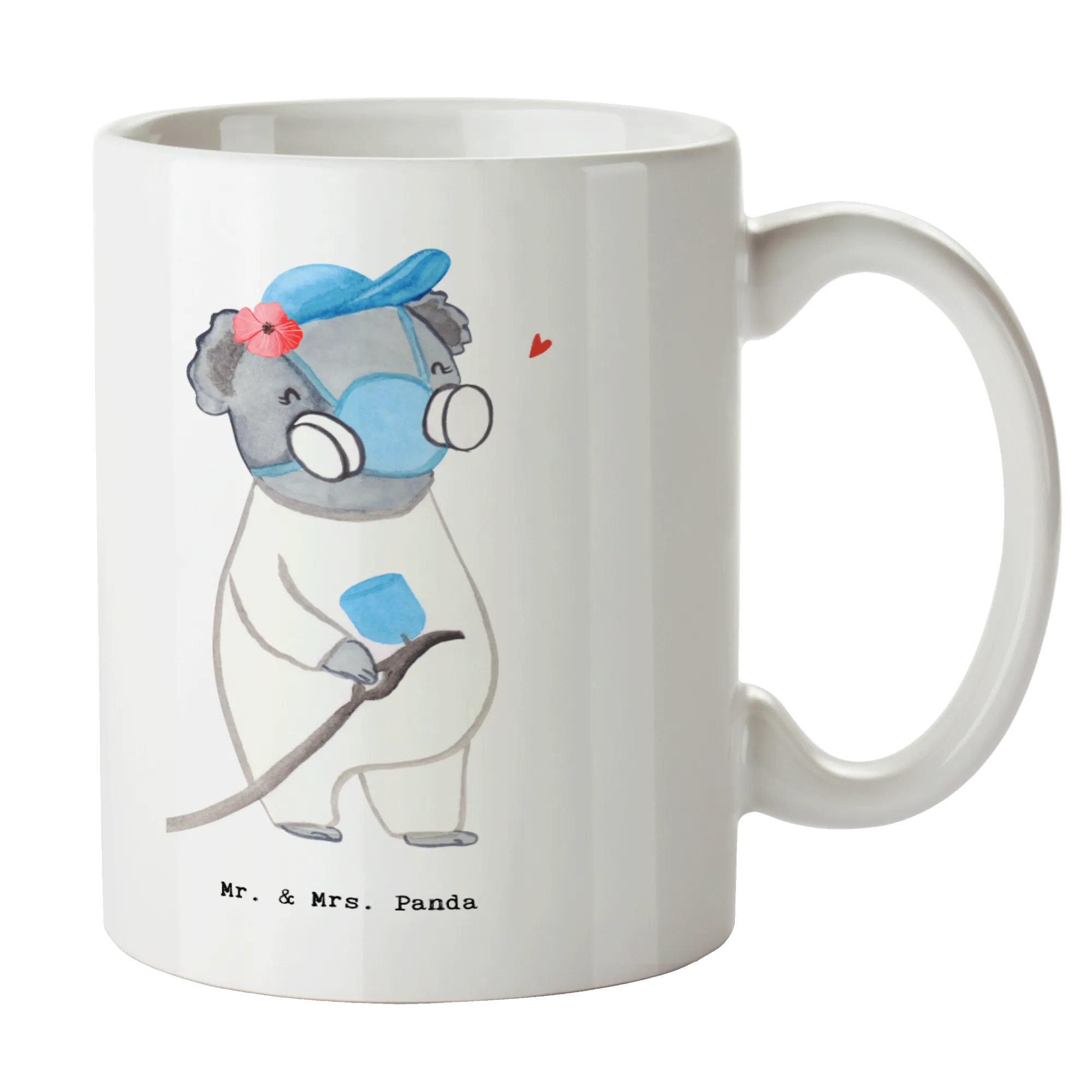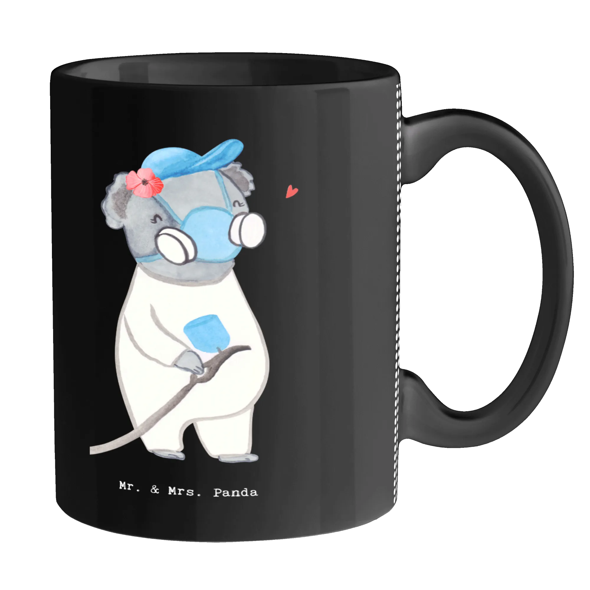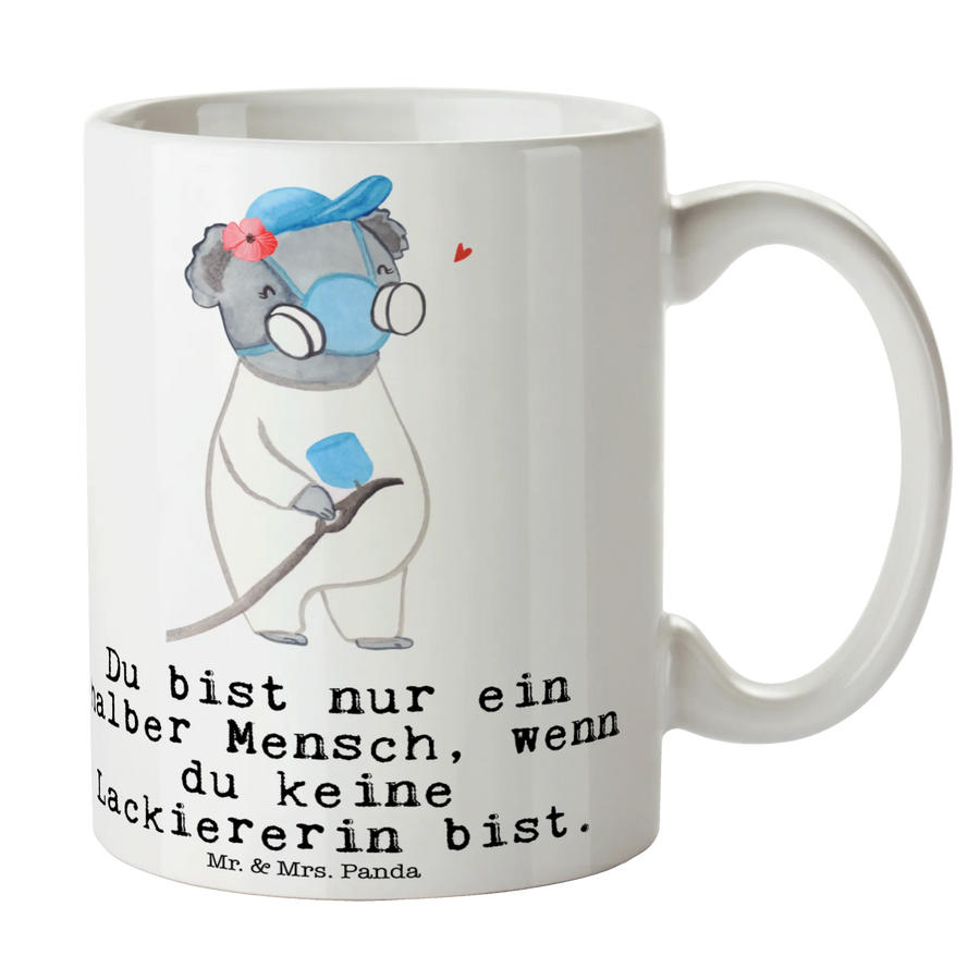 Suchst du nach dem perfekten Geschenk für die Lackiererin in deinem Leben? Dann ist die wunderschöne Keramiktasse "Lackiererin mit Herz" von Mr. & Mrs. Panda genau das Richtige! Diese Tasse ist nicht nur ein praktisches Accessoire für jede Werkstatt, sondern auch ein liebevolles Geschenk, das Herz und Humor verbindet. Der süße Koala, der sich mit einer Atemschutzmaske, einem Blaumann und einer Spritzpistole in der Hand präsentiert, bringt sofort gute Laune in jede Kaffeepause!