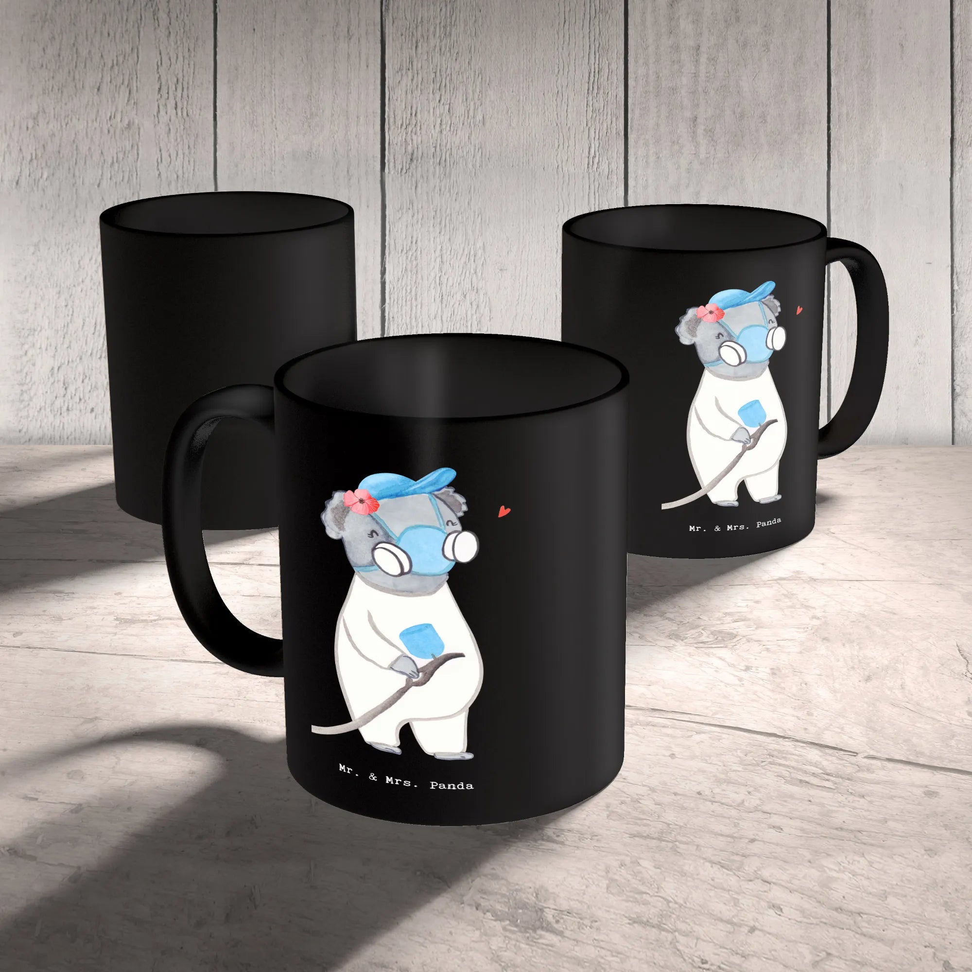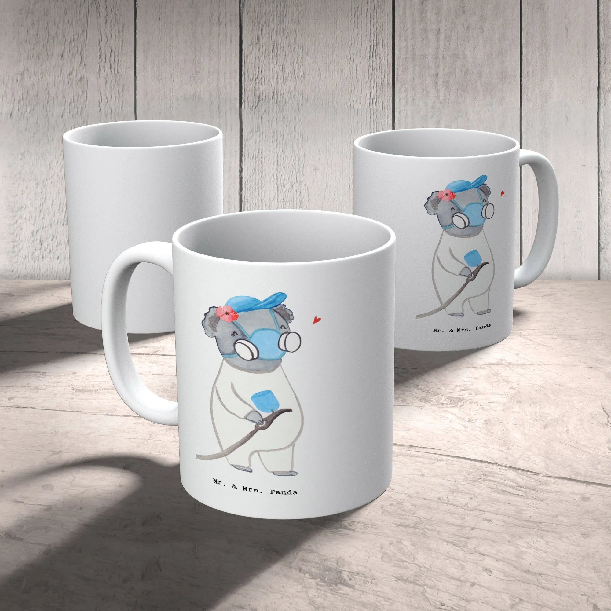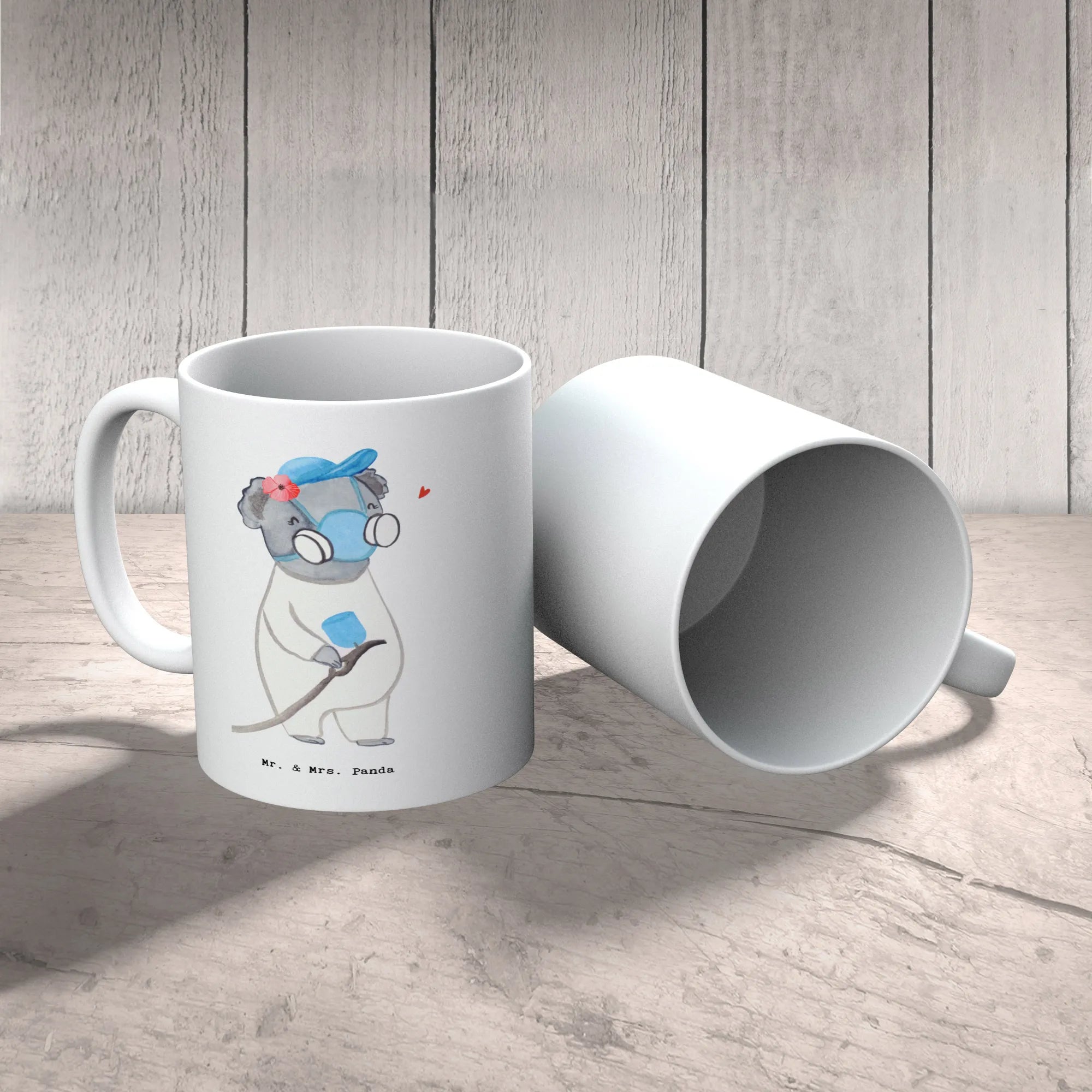 Suchst du nach dem perfekten Geschenk für die Lackiererin in deinem Leben? Dann ist die wunderschöne Keramiktasse "Lackiererin mit Herz" von Mr. & Mrs. Panda genau das Richtige! Diese Tasse ist nicht nur ein praktisches Accessoire für jede Werkstatt, sondern auch ein liebevolles Geschenk, das Herz und Humor verbindet. Der süße Koala, der sich mit einer Atemschutzmaske, einem Blaumann und einer Spritzpistole in der Hand präsentiert, bringt sofort gute Laune in jede Kaffeepause!