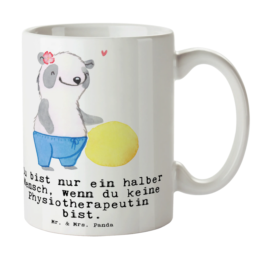 Suchst du ein Geschenk, das Herz und Alltag verbindet? Unsere Mr. & Mrs. Panda Tasse „Physiotherapeutin mit Herz“ ist genau das – eine liebevoll designte Kaffeetasse mit dem charmanten Spruch „Du bist nur ein halber Mensch, wenn du keine Physiotherapeutin bist.“ und einem niedlichen Panda mit Gymnastikball. Sie passt perfekt in die Praxis, ins Büro oder auf den Küchentisch.