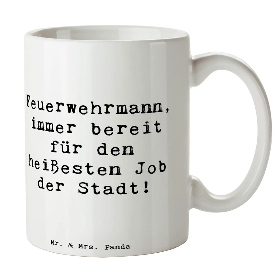 Suchst Du nach dem perfekten Geschenk für echte Helden des Alltags? Unsere Mr. & Mrs. Panda Tasse „Feuerwehrmann“ aus der Kollektion Berufe verbindet liebevolle Illustration mit einem frechen Spruch: Feuerwehrmann, immer bereit für den heißesten Job der Stadt! 🧑🚒
