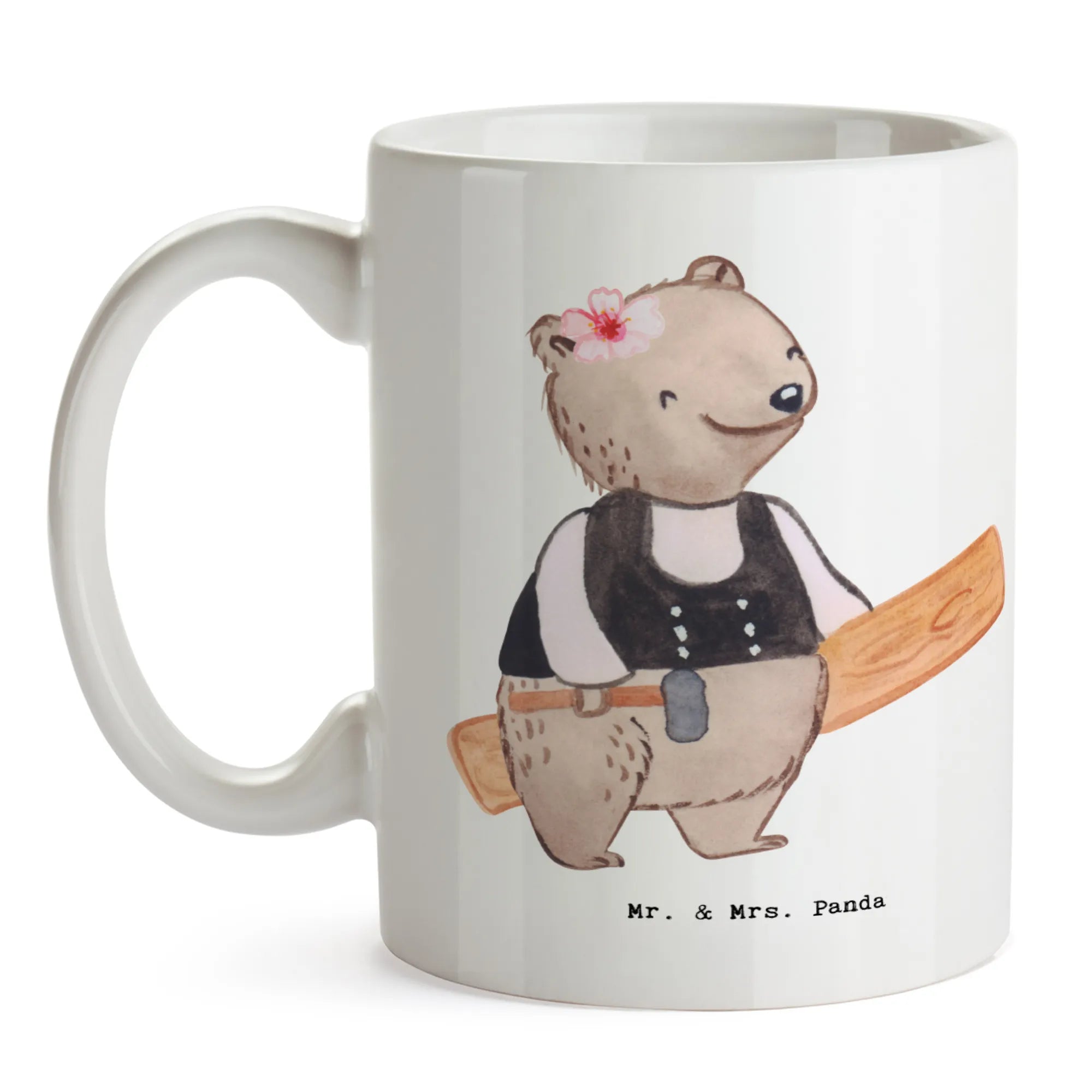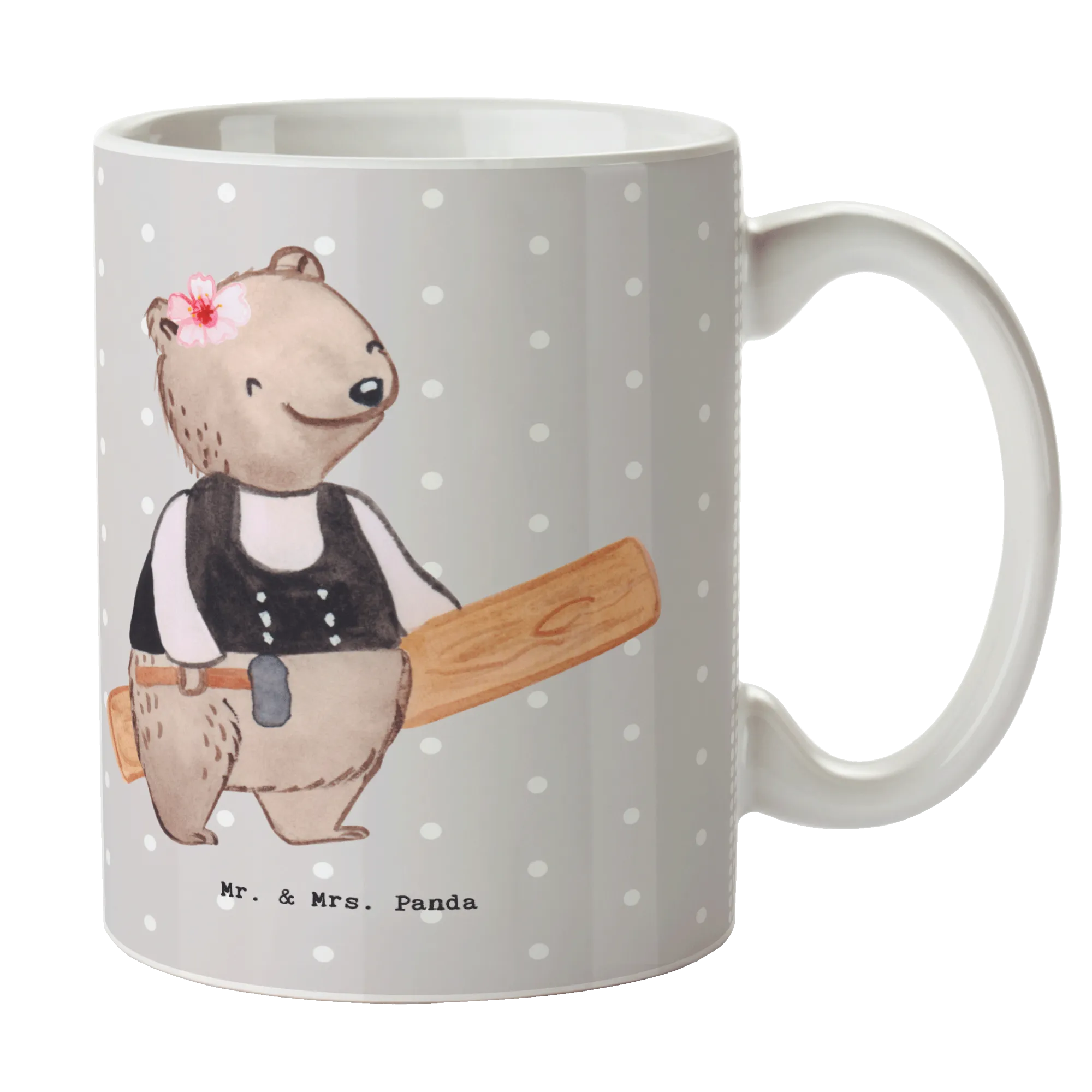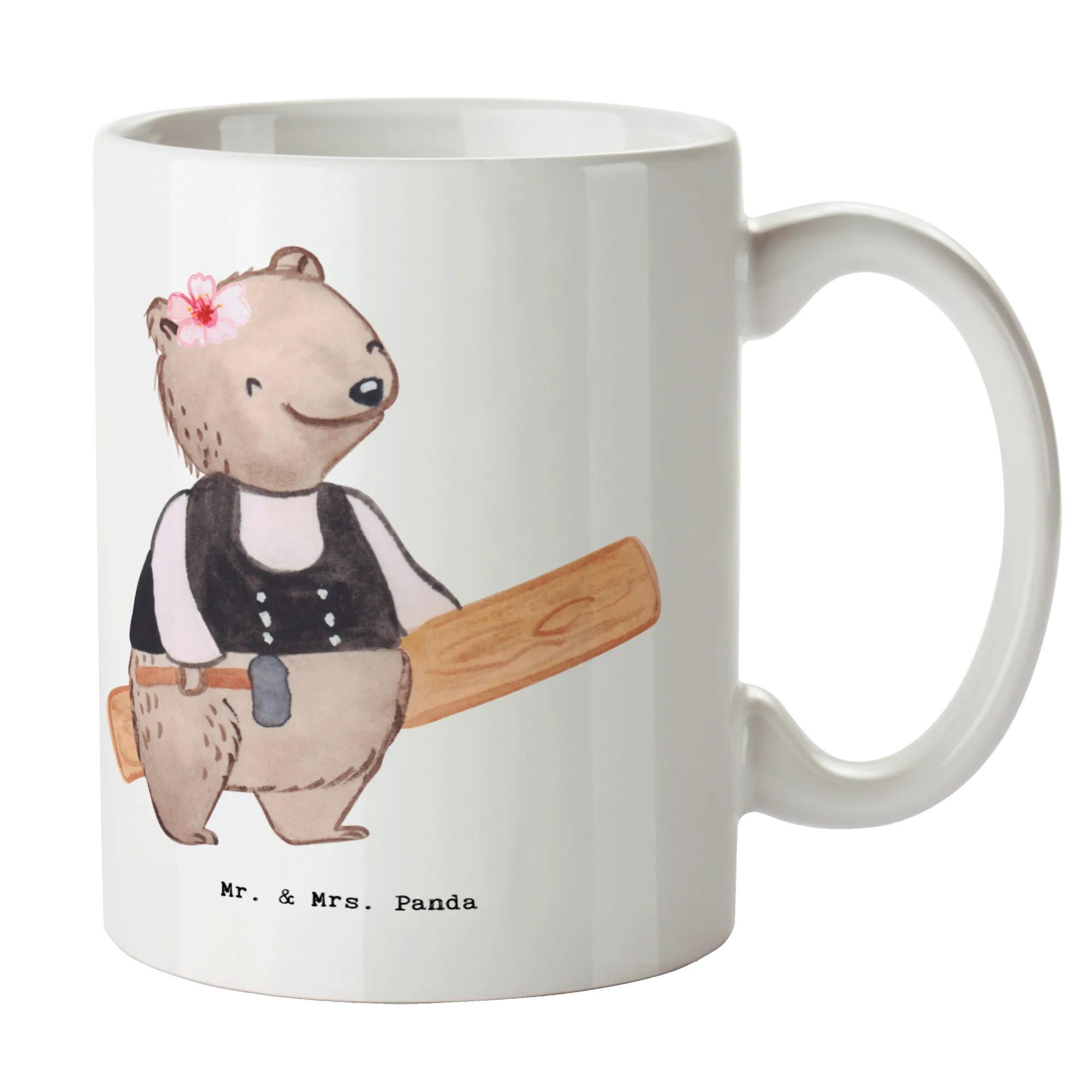 Zimmerfrau mit Herz – süße Bärin im Zimmermann-Outfit mit Hammer & Holzbrett | Mr. & Mrs. Panda Motiv – Geschenk & Deko
