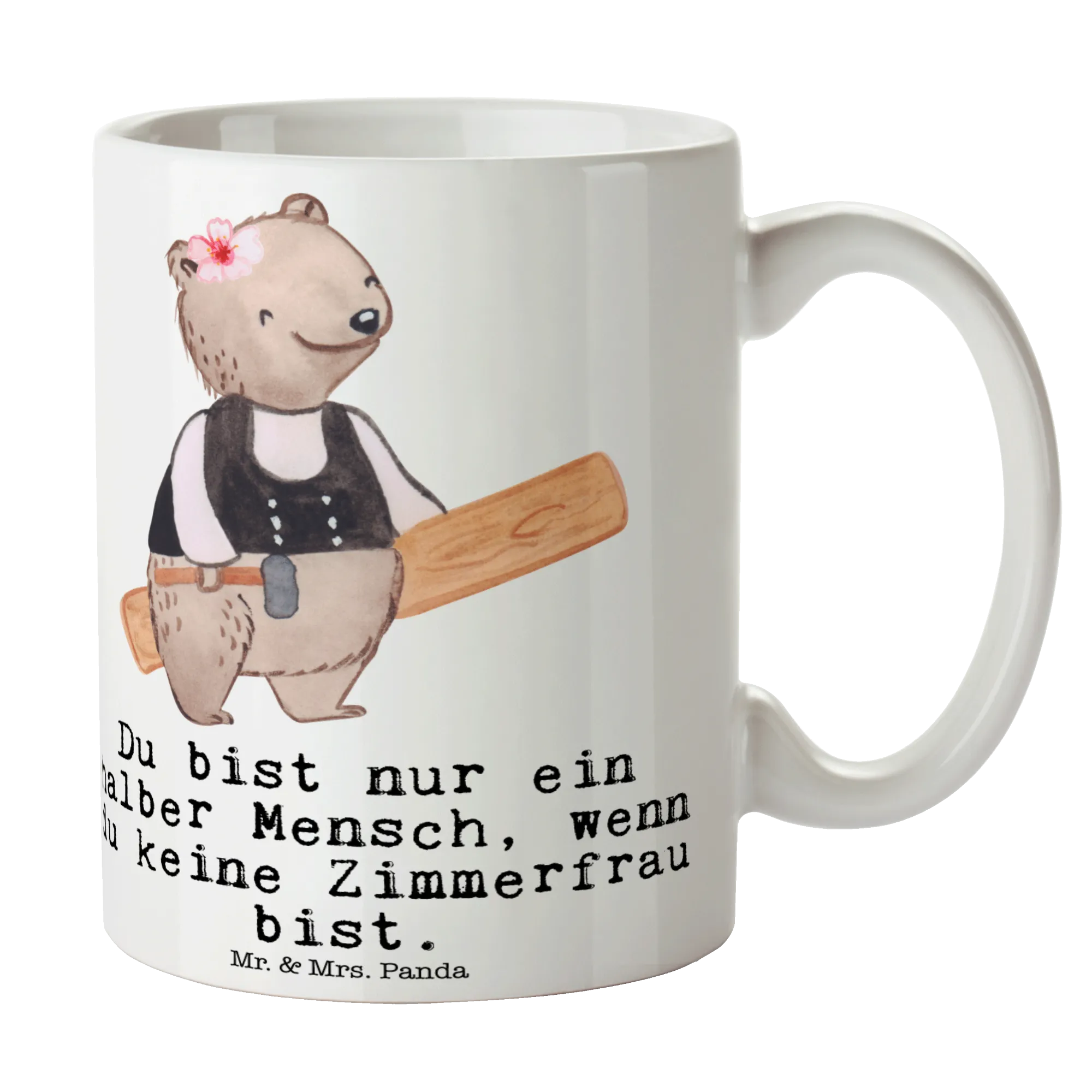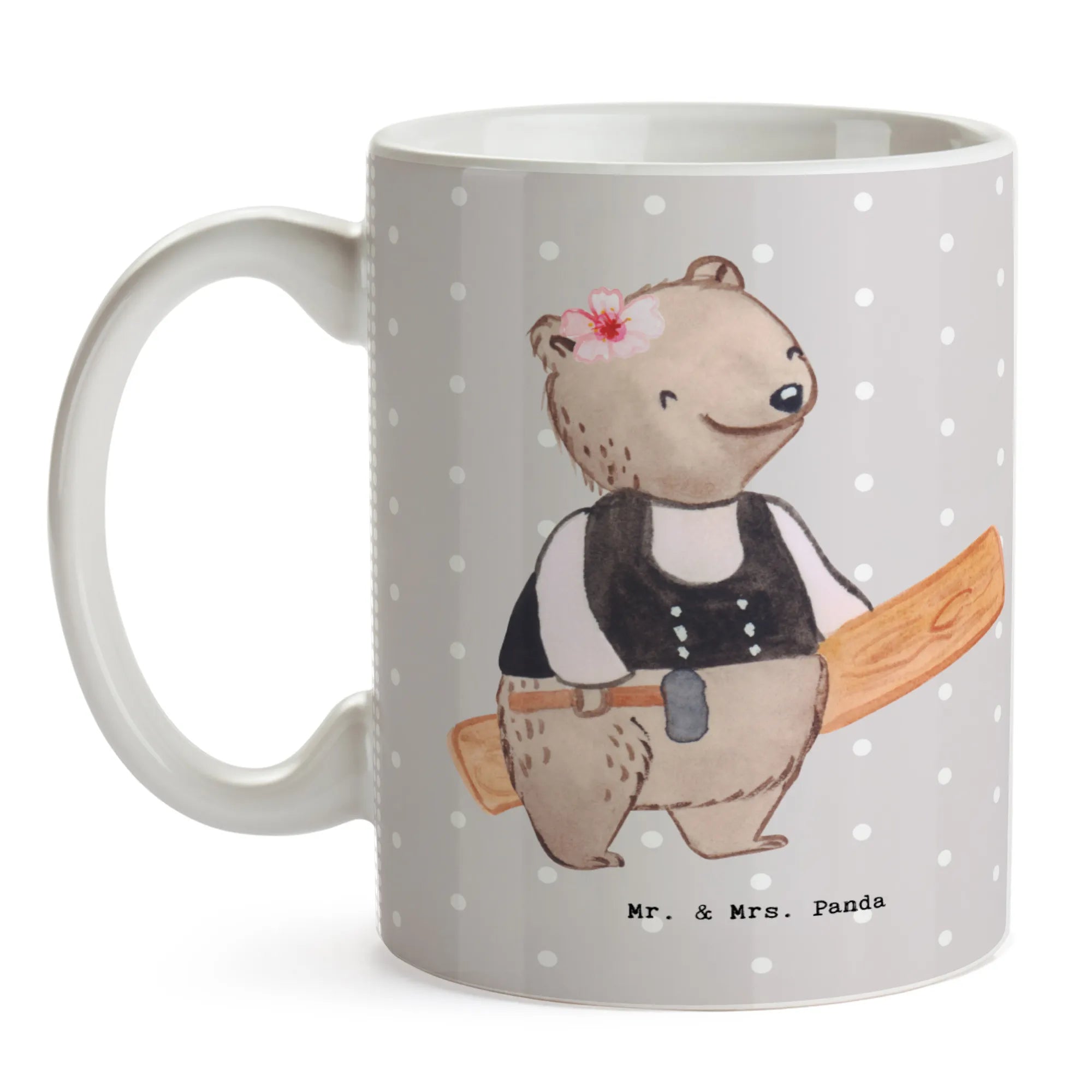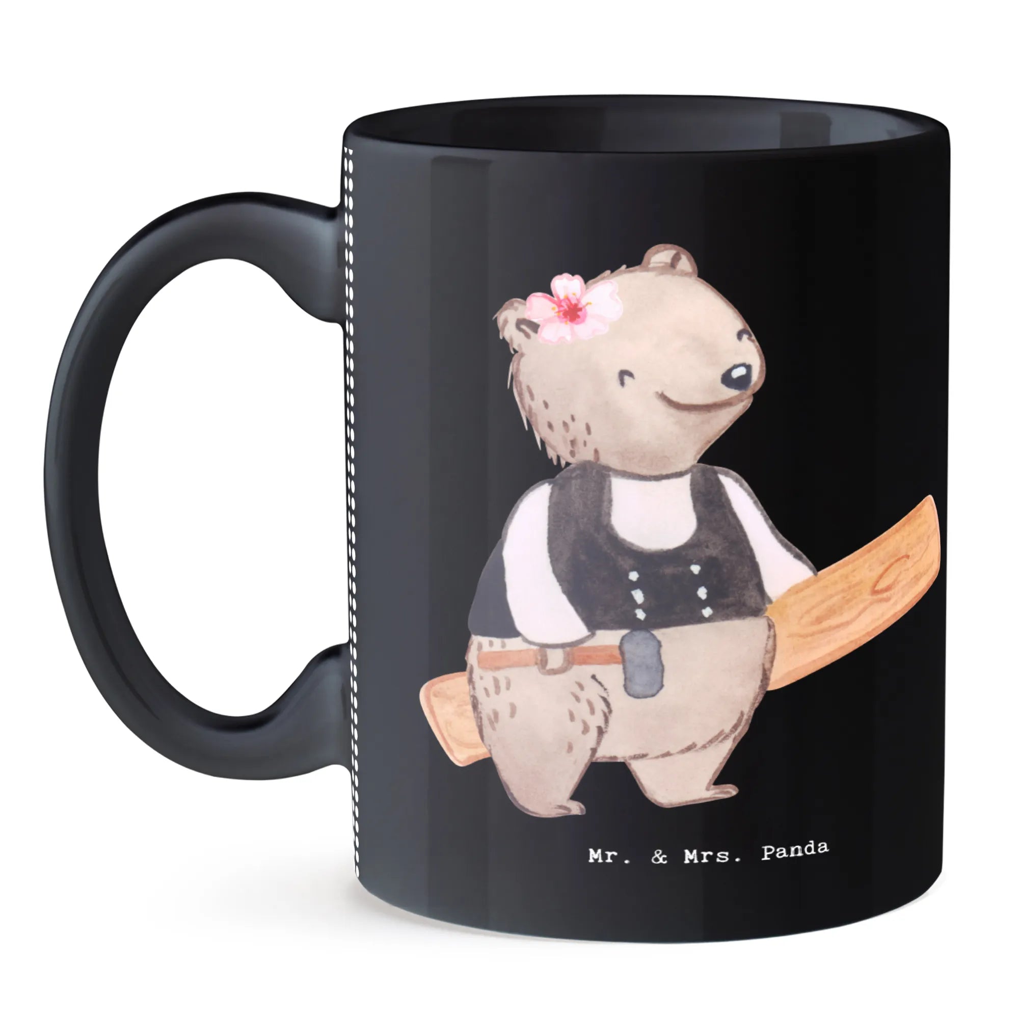 Zimmerfrau mit Herz – süße Bärin im Zimmermann-Outfit mit Hammer & Holzbrett | Mr. & Mrs. Panda Motiv – Geschenk & Deko