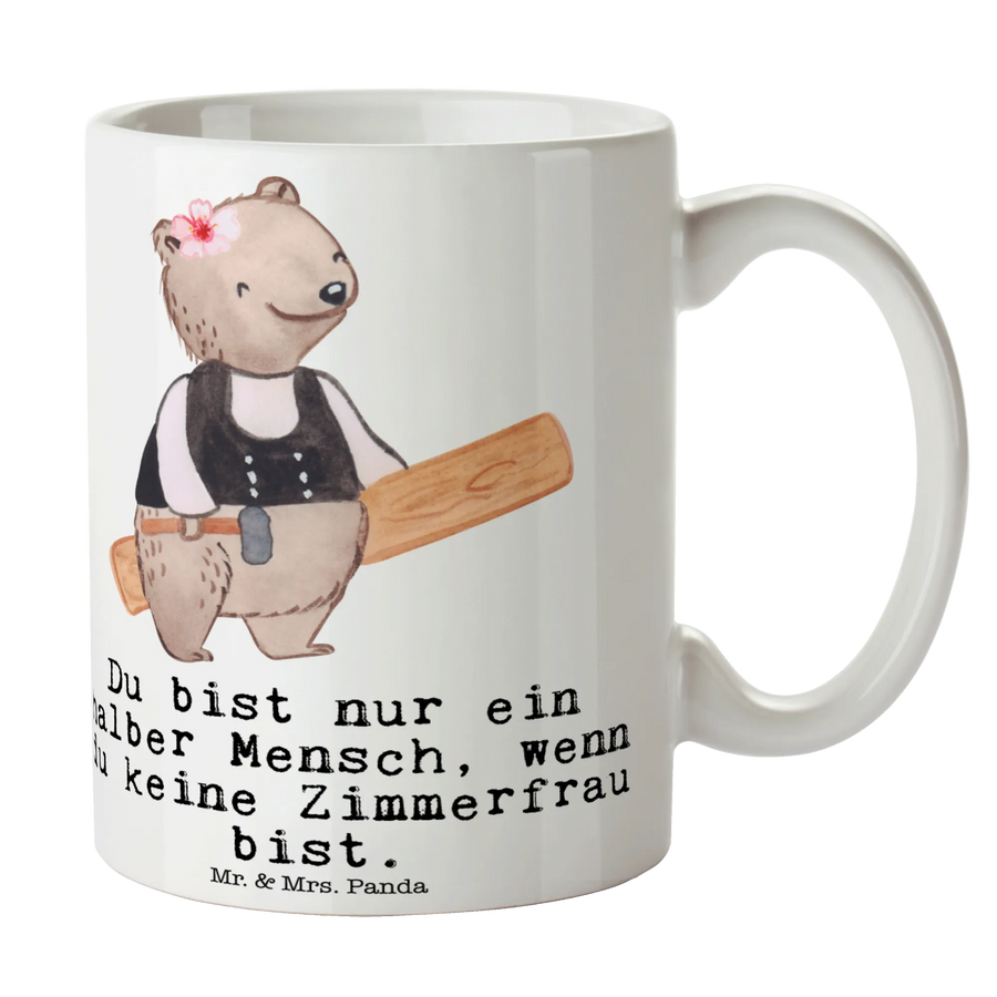 Tasse Zimmerfrau mit Herz - mit Spruch - Weiß