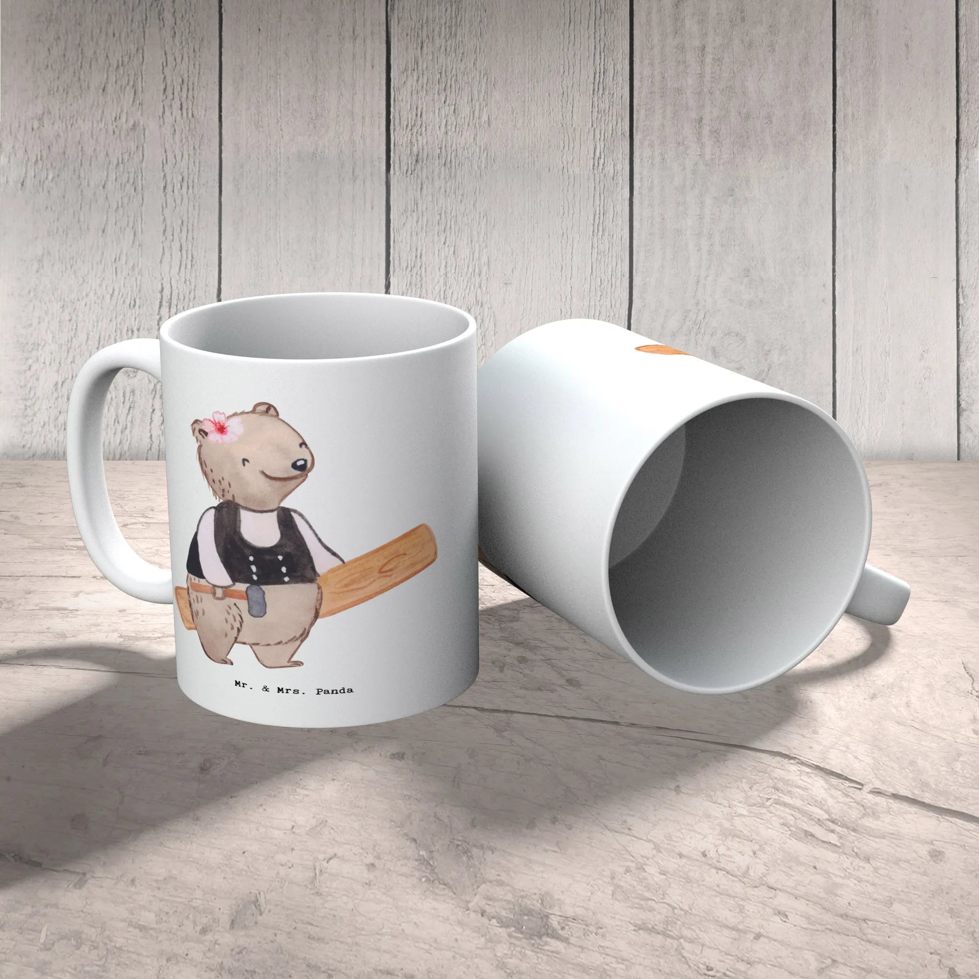 Zimmerfrau mit Herz – niedliche Bärin im Zimmermanns-Outfit mit Hammer | Geschenk & Deko von Mr. & Mrs. Panda