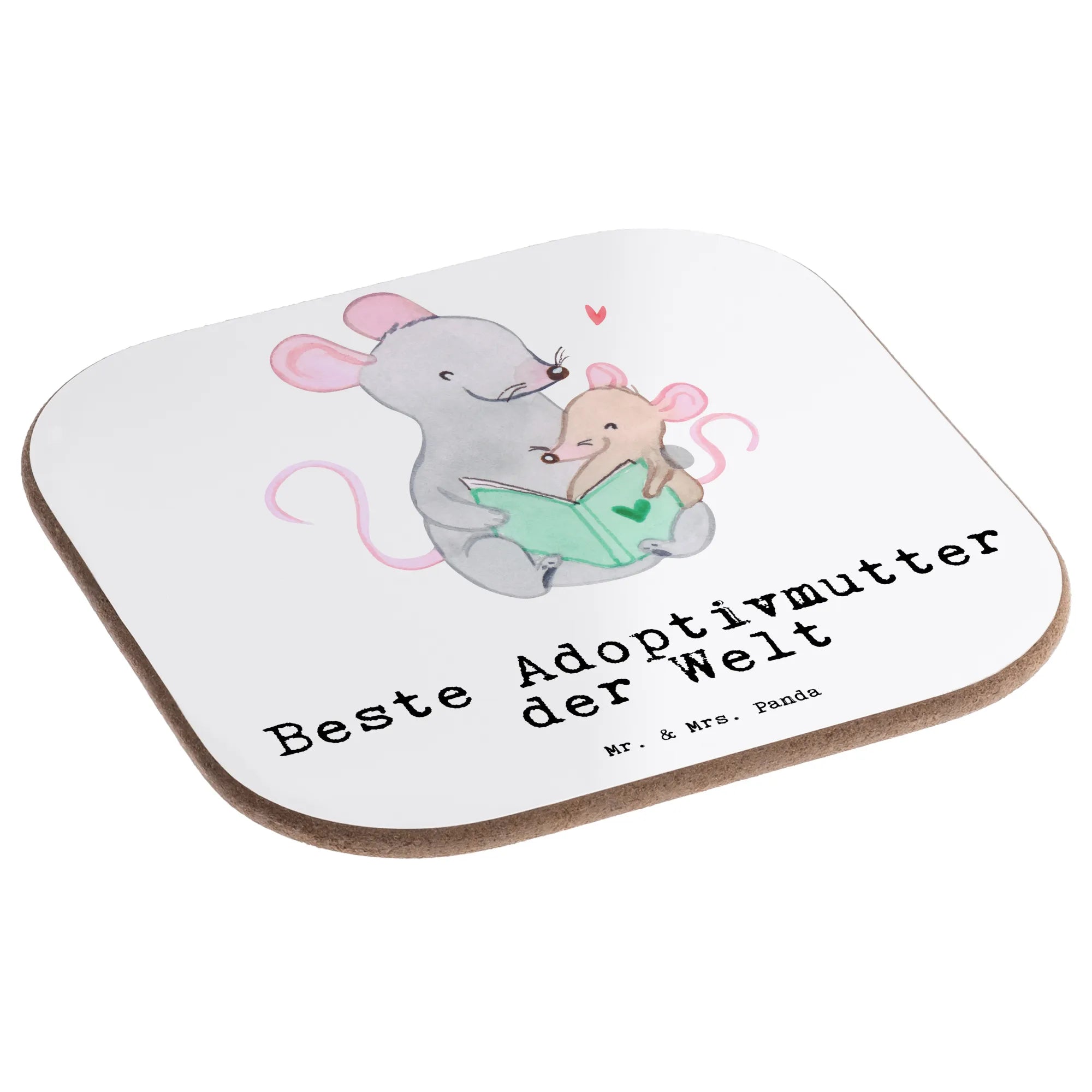Quadratische Untersetzer Maus Beste Adoptivmutter der Welt – Mr. & Mrs. Panda