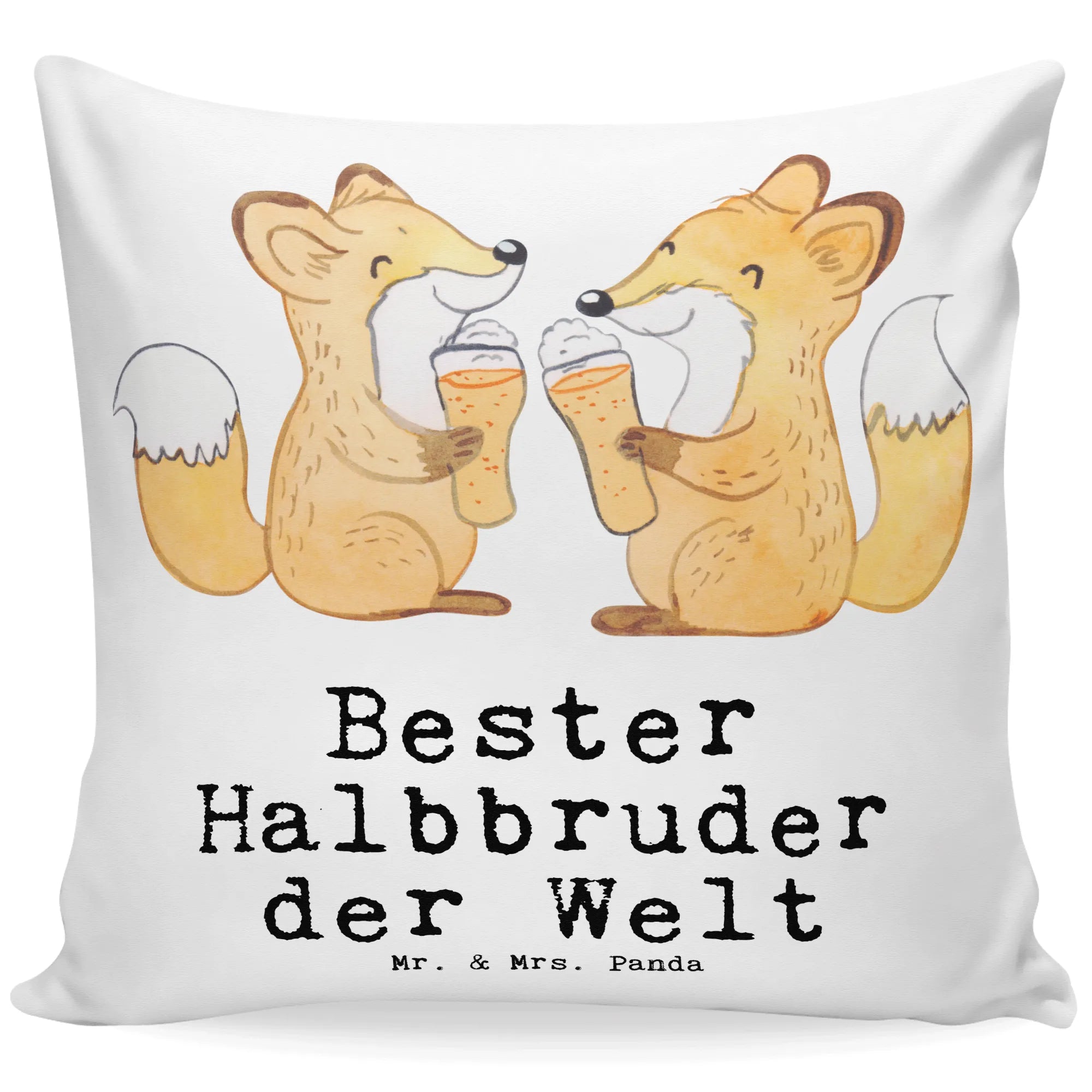Das 40x40 Kissen "Fuchs Bester Halbbruder der Welt" von Mr. & Mrs. Panda ist das perfekte Geschenk, um deinem Halbbruder eine besondere Freude zu machen! Mit liebevollen Motiven und einem charmanten Spruch begeistert dieses Kissen nicht nur im Kinderzimmer, sondern wird auch in jedem Wohnbereich zum Hingucker. Die beiden süßen Füchse, die begeistert mit einem Bier anstoßen, vermitteln das Gefühl von Zusammengehörigkeit und Freundschaft. Egal, ob zum Geburtstag, zu einem besonderen Anlass oder einfach als kleines Dankeschön – mit diesem Kissen zauberst du deinem Halbbruder garantiert ein Lächeln ins Gesicht.