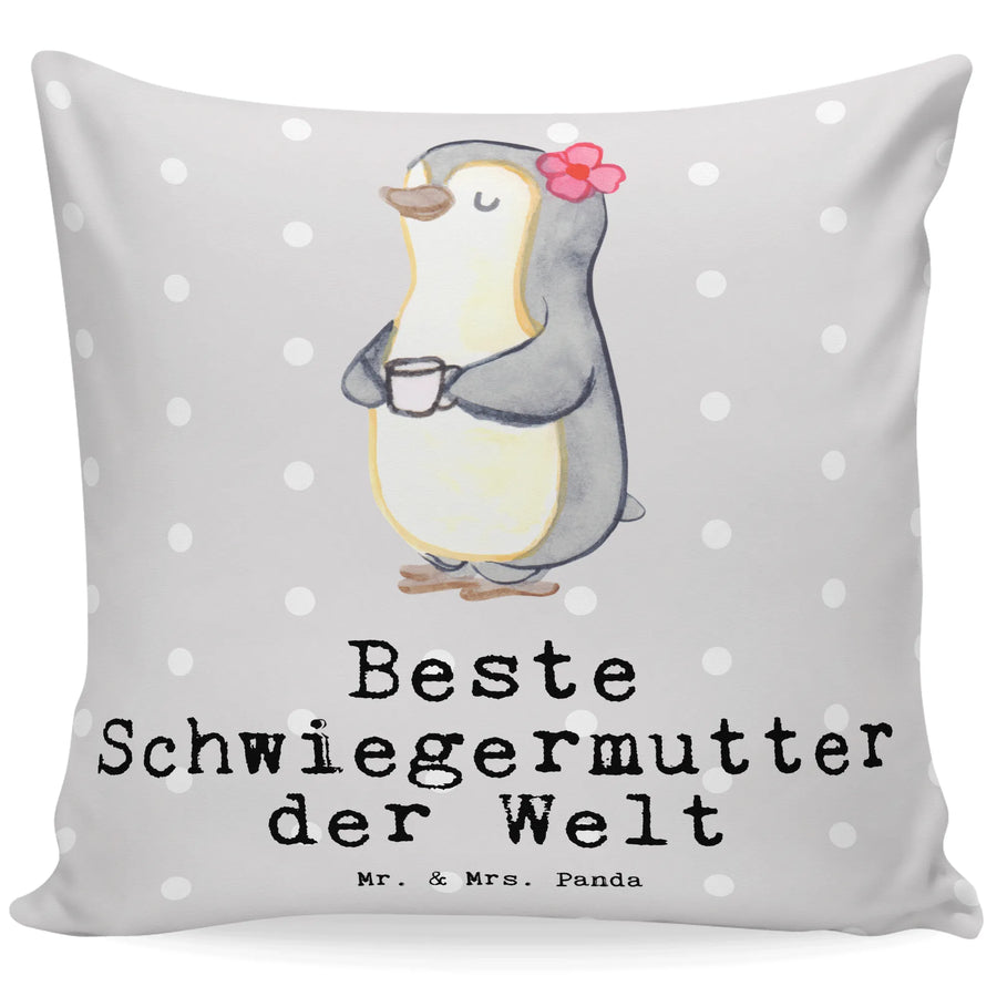 kissen bedruckt Pinguin Beste Schwiegermutter der Welt - Grau Pastell