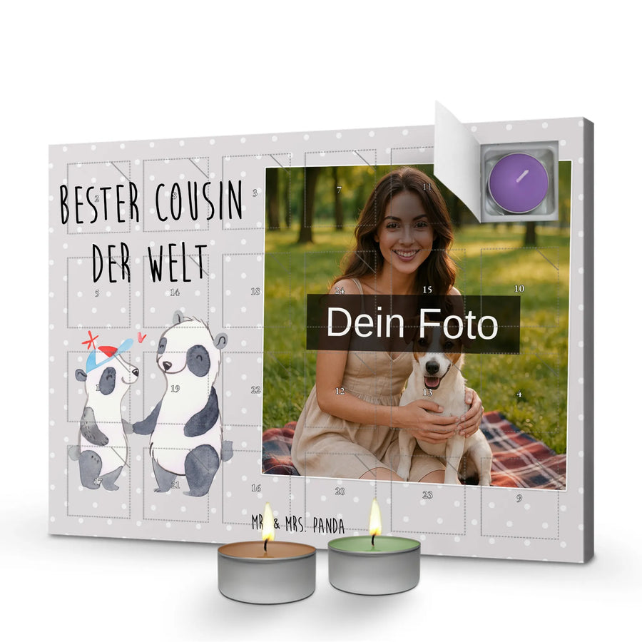 Personalisierter Duftkerzen Foto Adventskalender Panda Bester Cousin der Welt