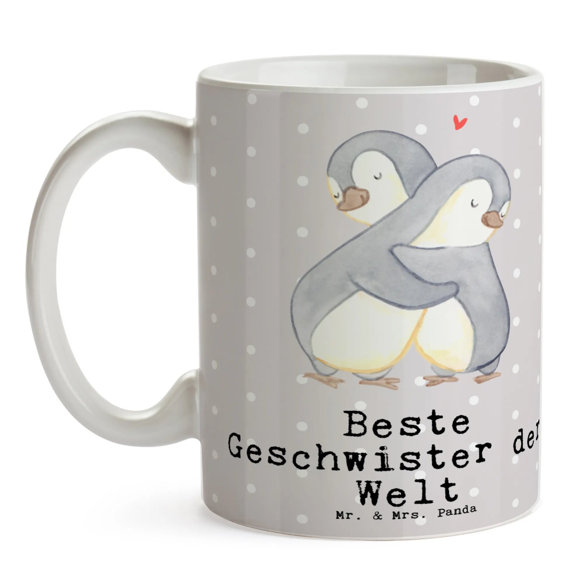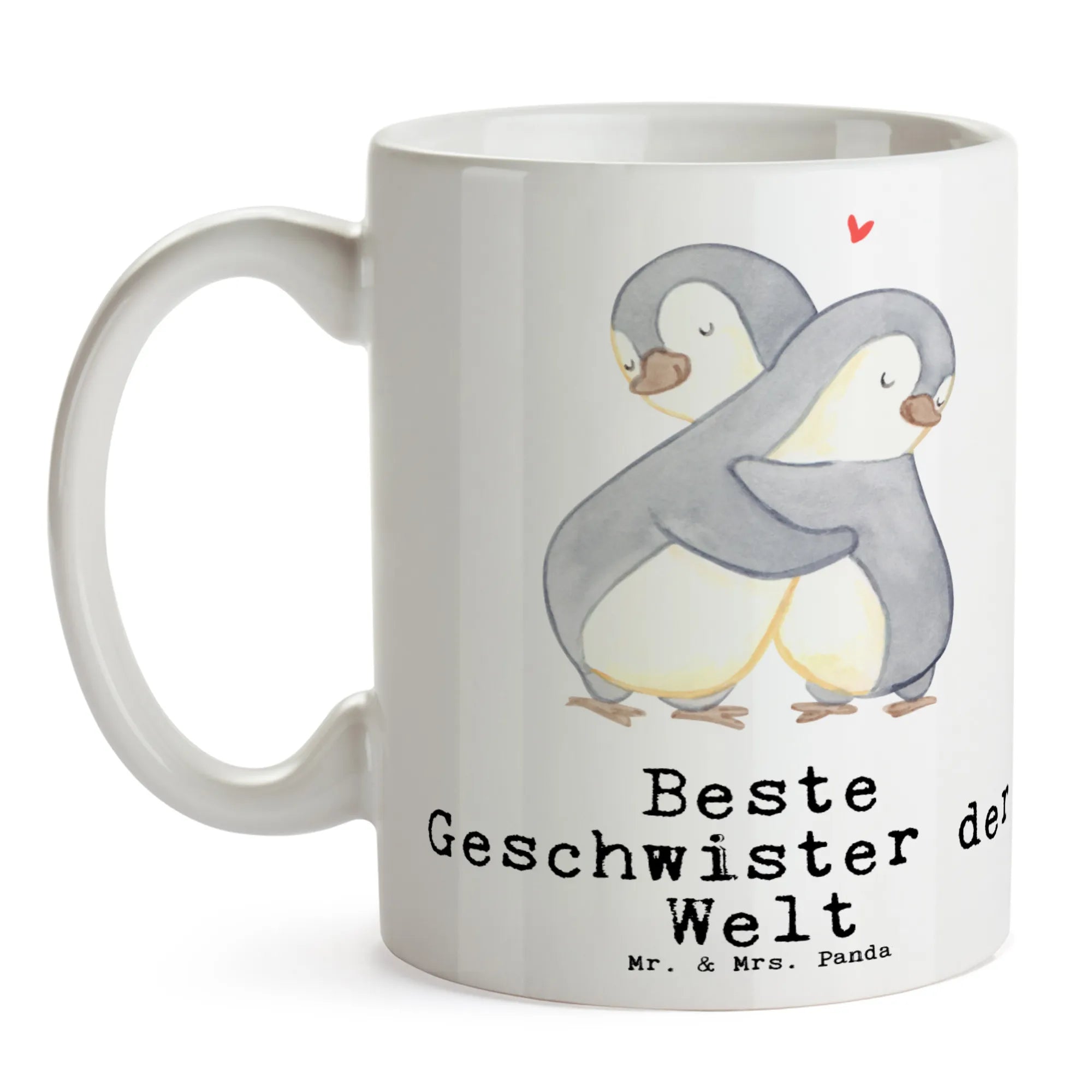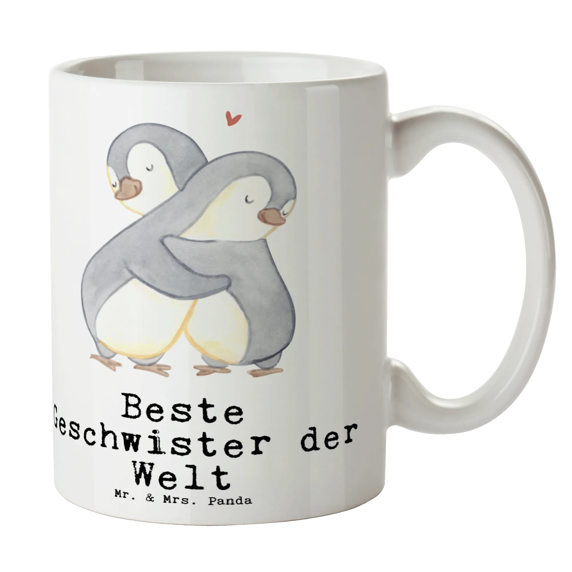 Entdecke die wunderschöne Tasse mit dem Motiv "Pinguin Beste Geschwister der Welt" von Mr. & Mrs. Panda!
