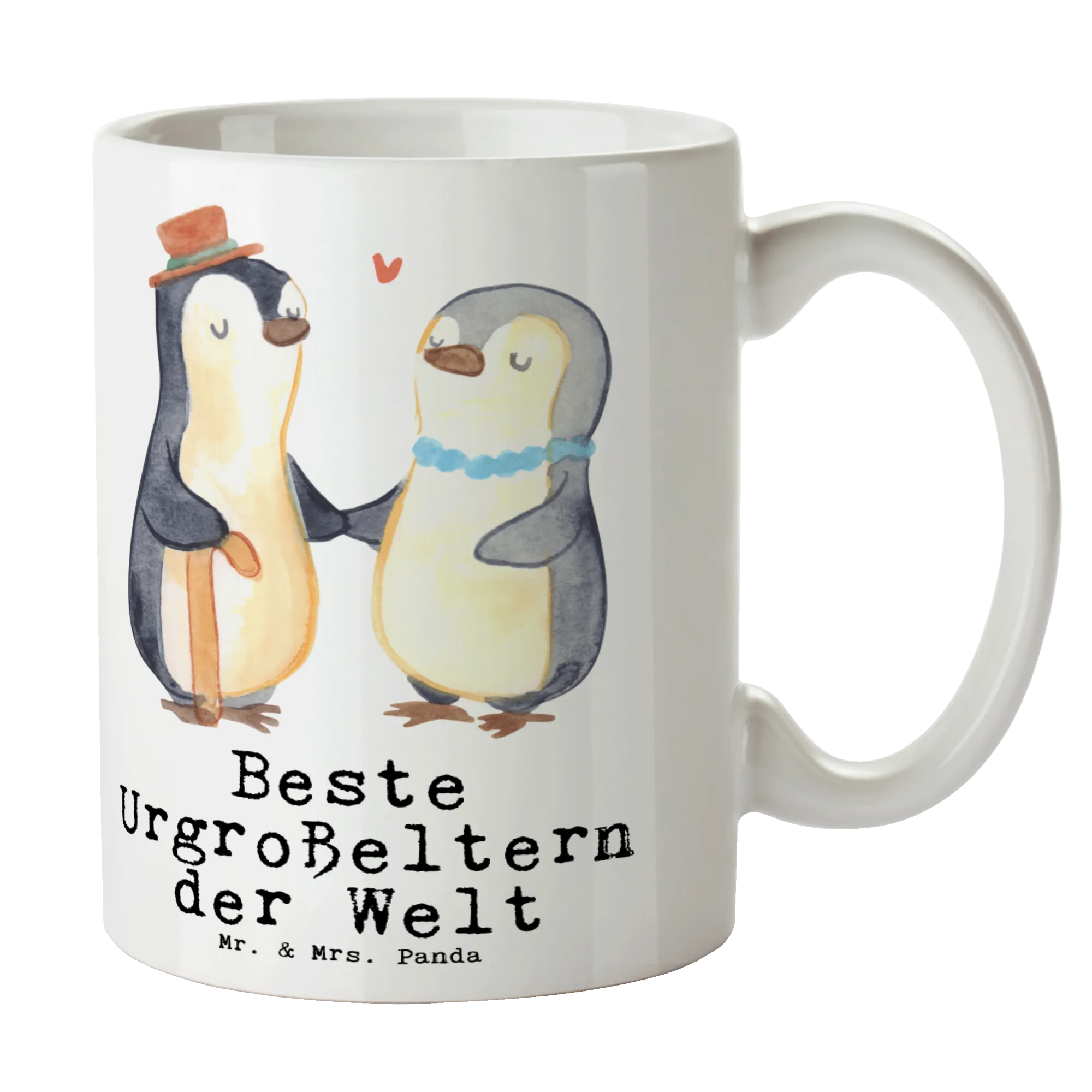 Die wunderschöne Tasse mit dem Motiv "Pinguin Beste Urgroßeltern der Welt" aus der zauberhaften Kollektion Beziehungen von Mr. & Mrs. Panda ist das perfekte Geschenk, um Deinen Urgroßeltern eine besondere Freude zu bereiten!