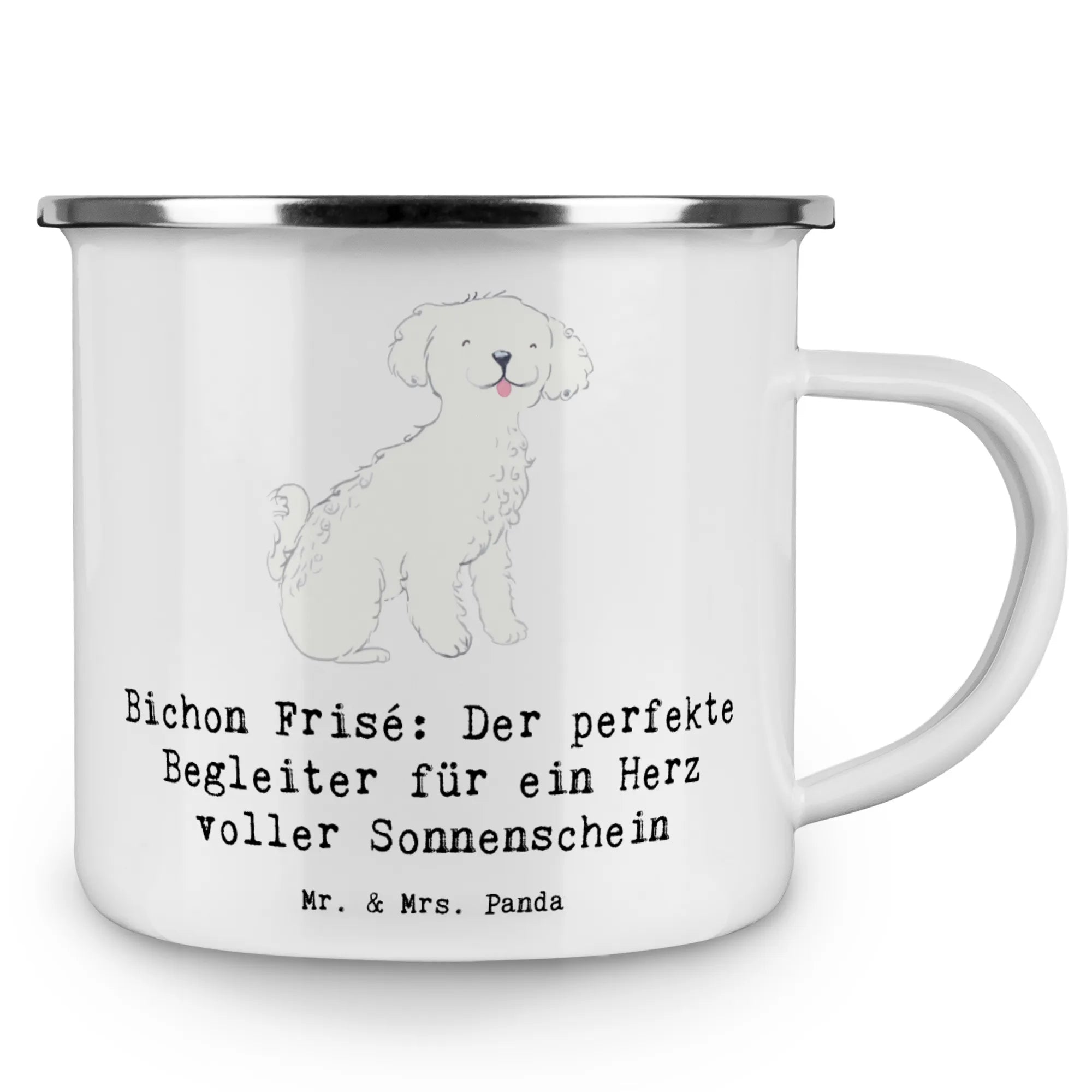 Die Camping Emaille Tasse mit dem niedlichen Bichon Frisé Motiv von Mr. & Mrs. Panda ist das perfekte Geschenk für jeden Hundefan und Naturfreund!