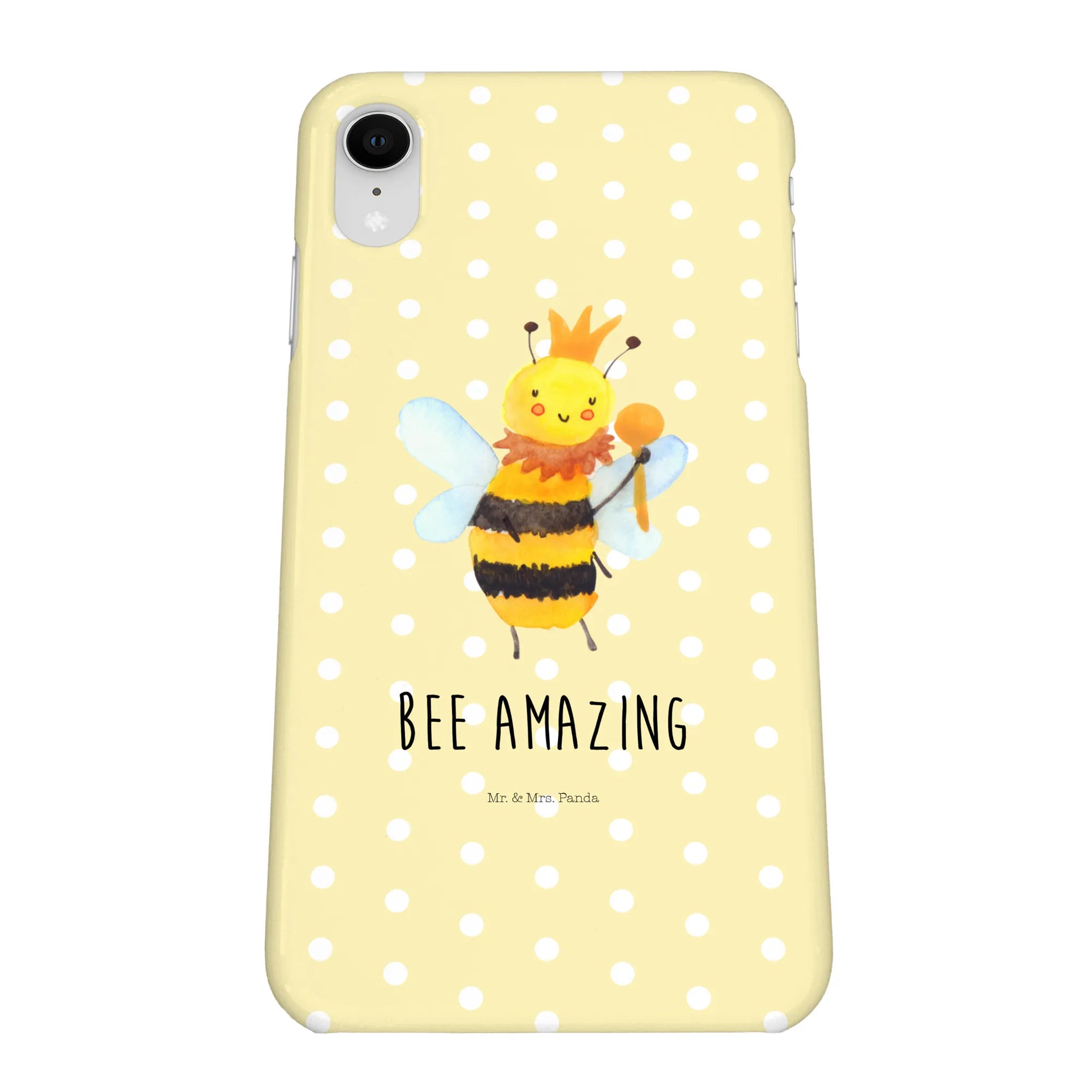 Die bezaubernde iPhone XR Hülle aus der Bienen Kollektion von Mr. & Mrs. Panda vereint Schutz und Persönlichkeit. Auf einem zarten Gelb Pastell strahlt die kleine Bienen-Königin mit Krone und Zepter und trägt den positiven Spruch „Bee amazing“. Ein Design, das Dir im Alltag ein Lächeln schenkt und zugleich ein liebevolles Statement für Naturverbundenheit ist.