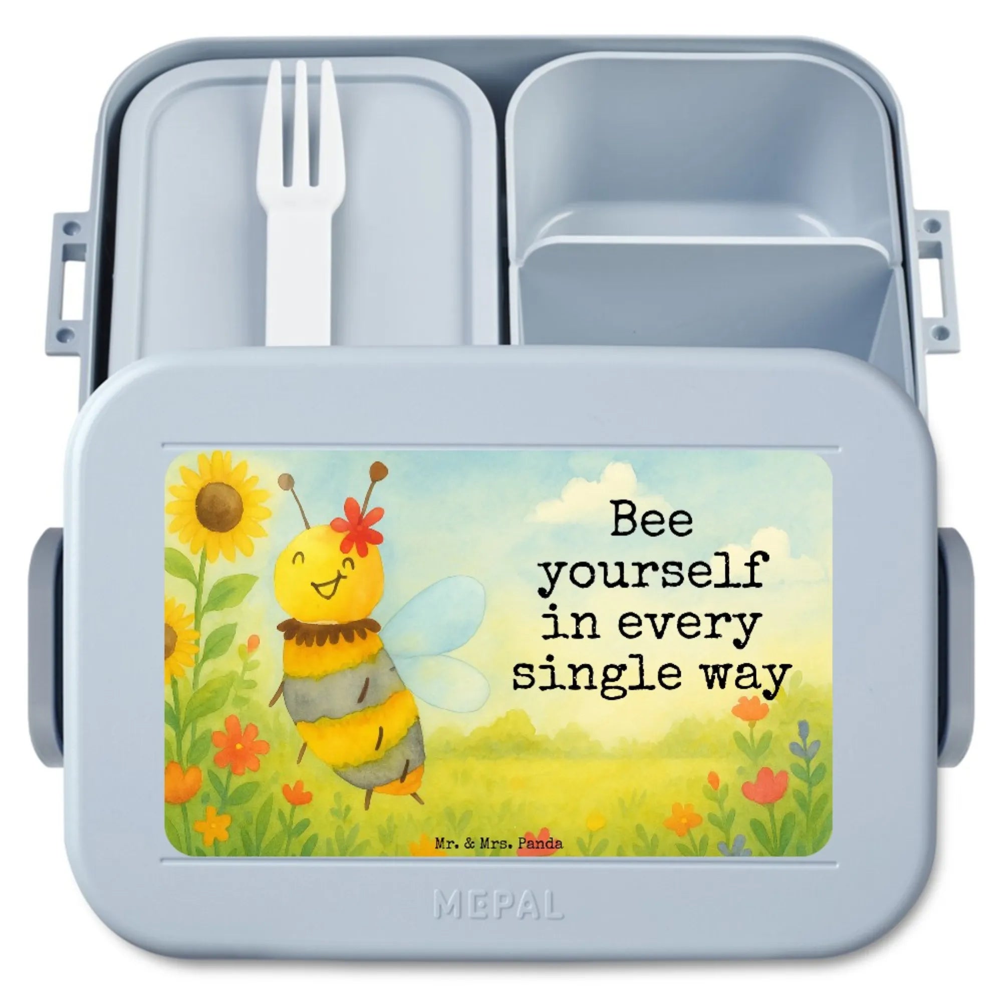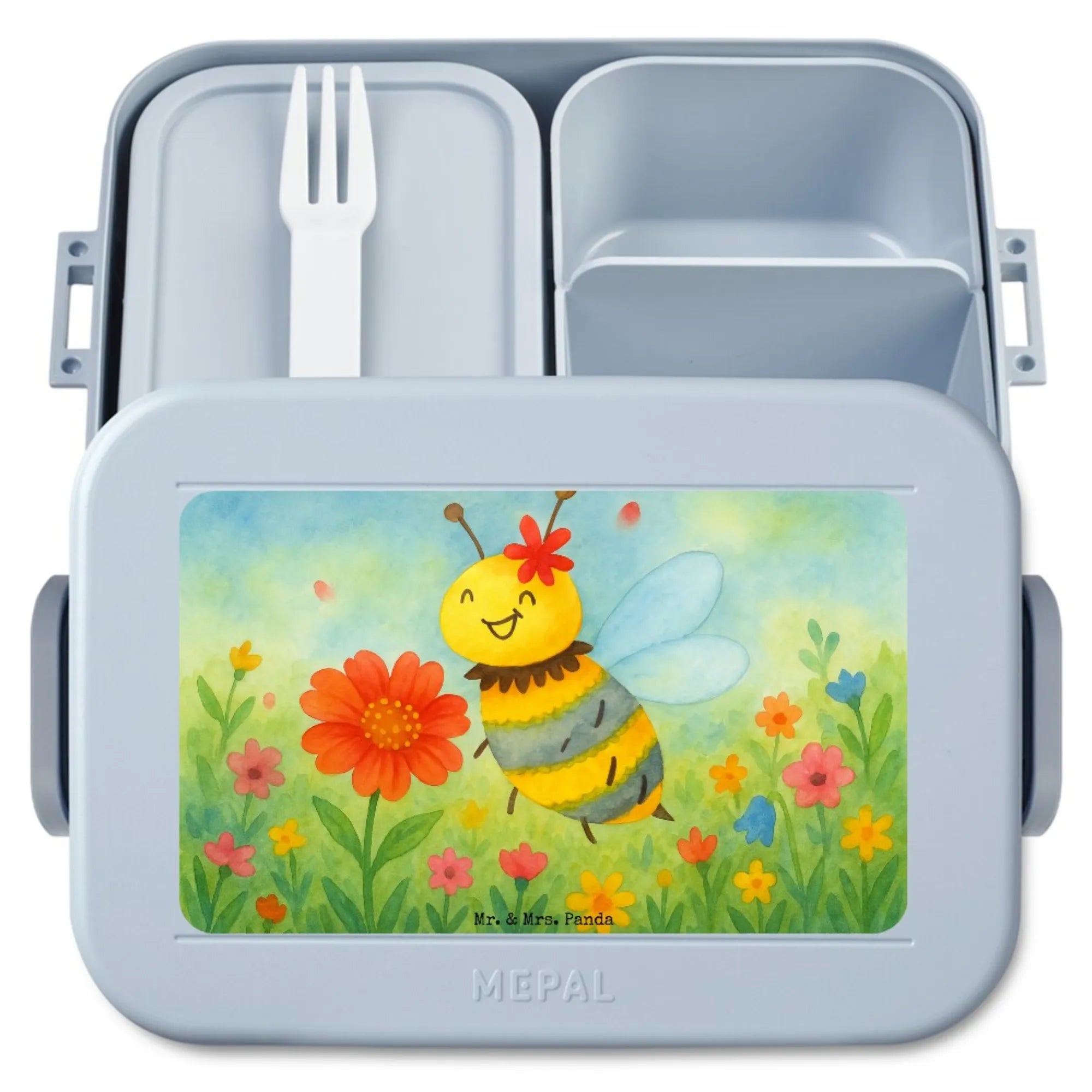 MEPAL Bentobox Biene Blume Design - mit Spruch - Blau Pastell