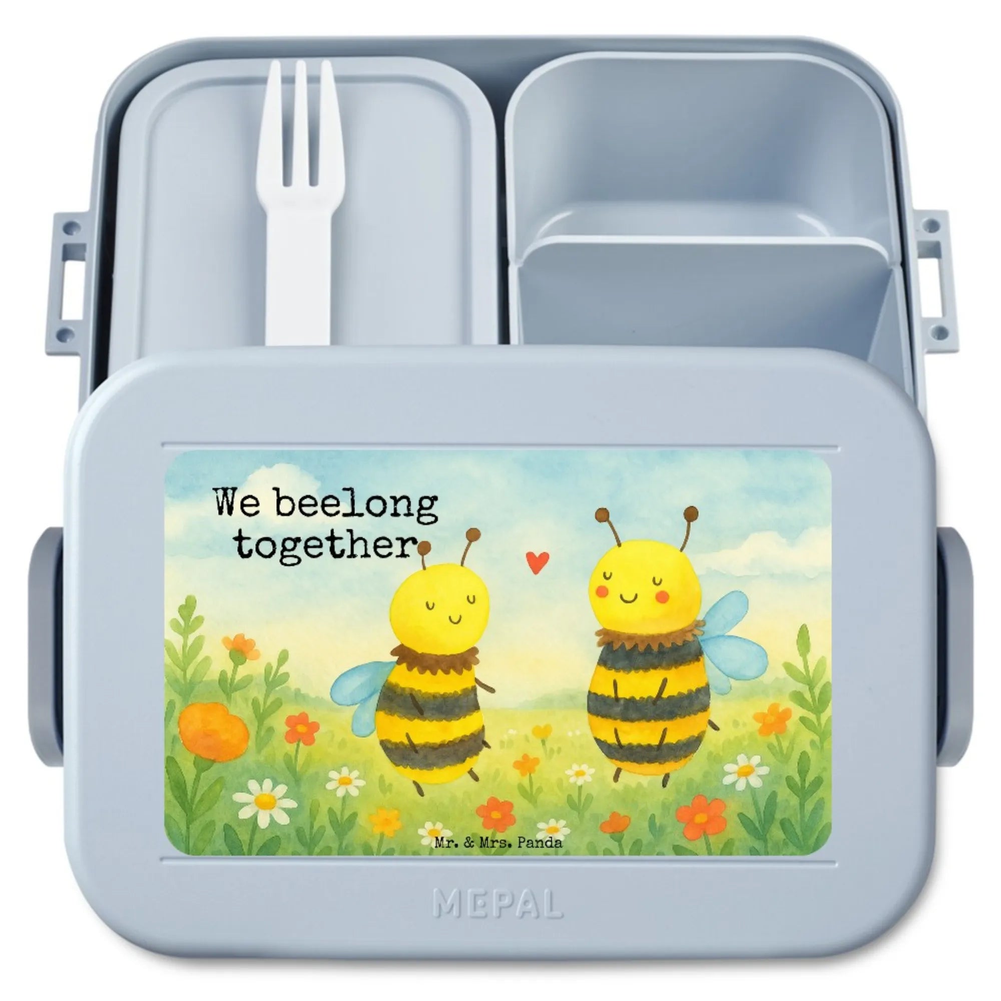 MEPAL Bentobox Biene Verliebt Design - mit Spruch - Blau Pastell