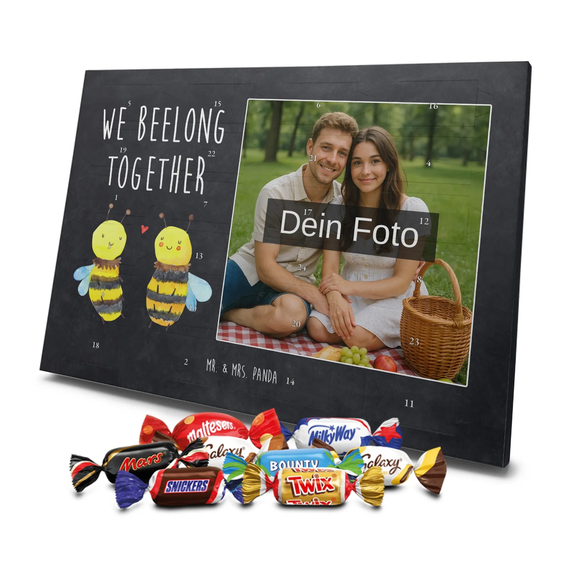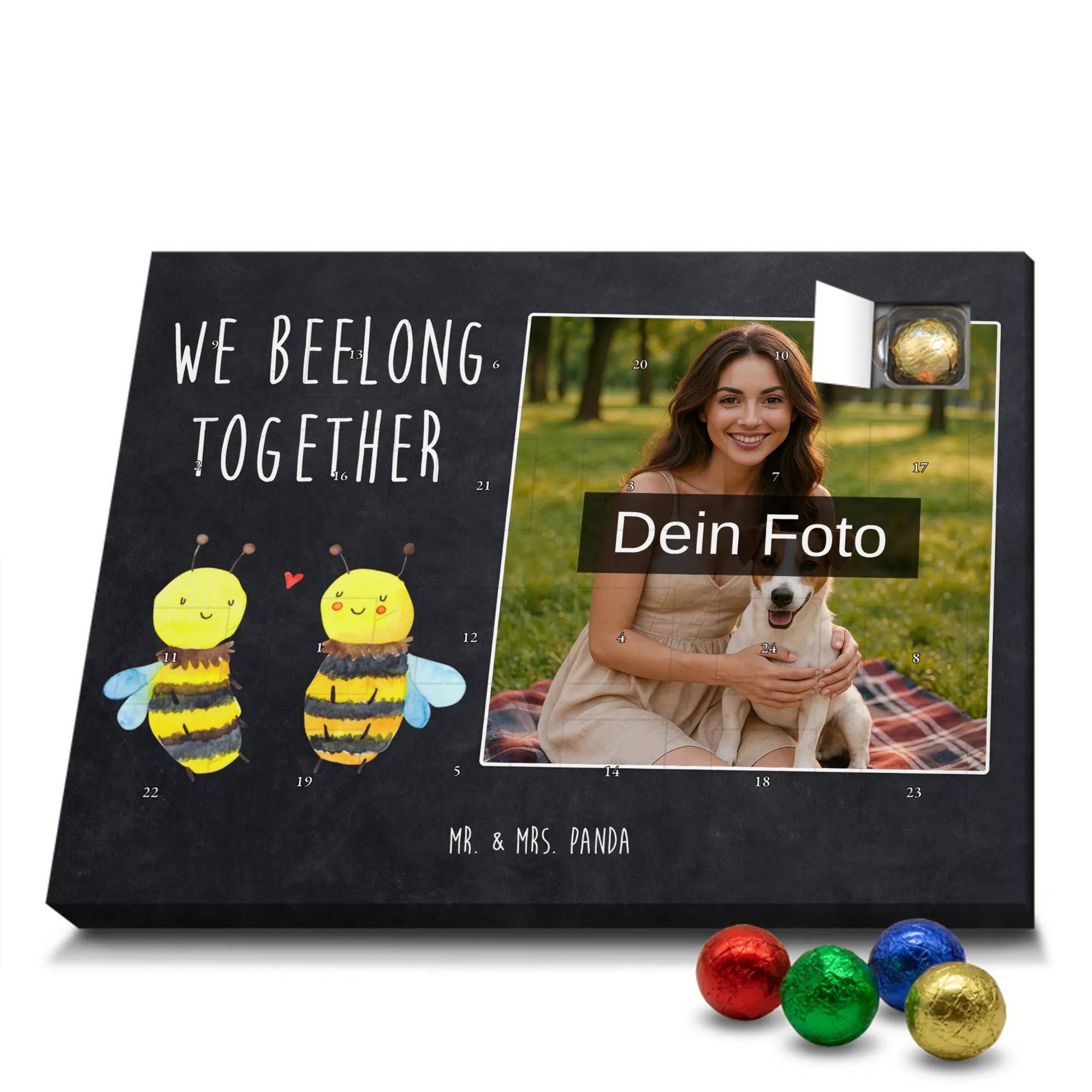 Die Vorweihnachtszeit ist die Zeit der Liebe, der Geborgenheit und der kleinen Aufmerksamkeiten, die von Herzen kommen. Mit dem wunderschönen personalisierten Schoko Foto Adventskalender von Mr. & Mrs. Panda verschenkst du nicht nur Schokolade, sondern 24 Tage voller gemeinsamer Erinnerungen und süßer Genussmomente. 🐝❤️