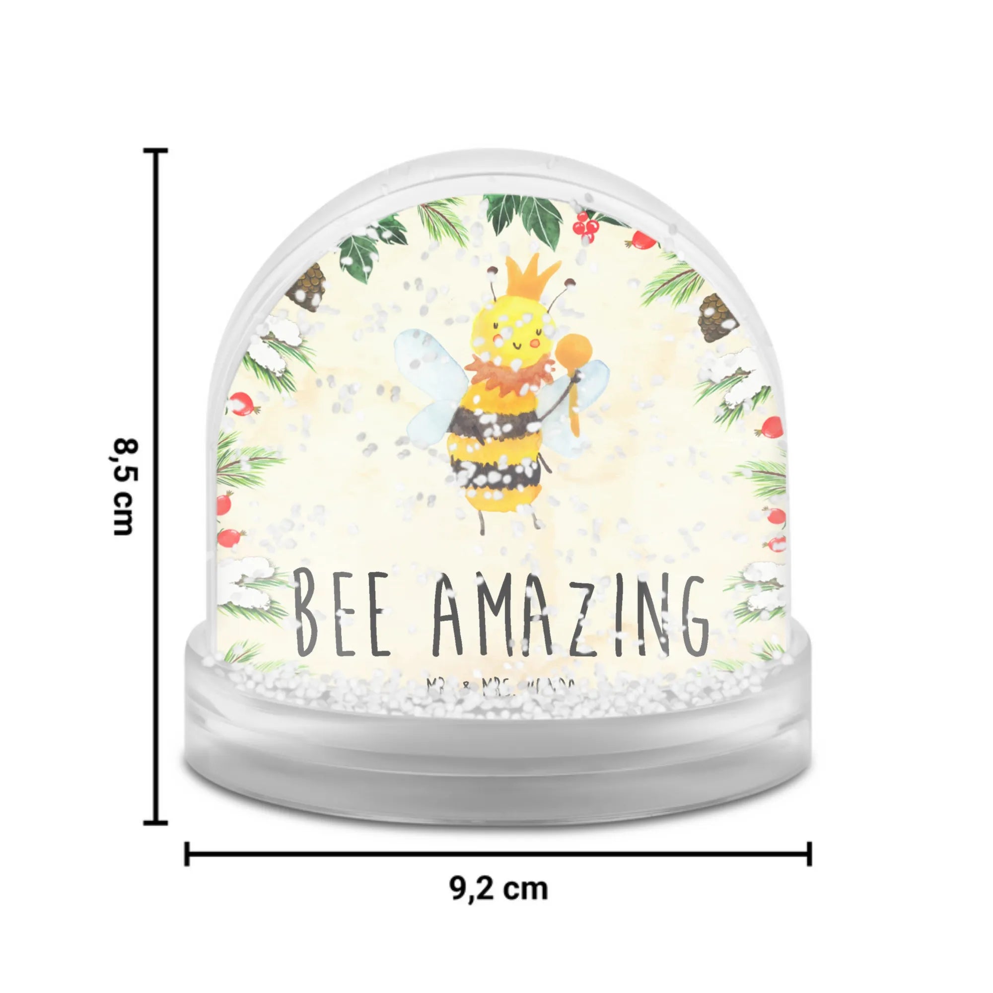 Die bezaubernde Schneekugel 'Biene König' von Mr. & Mrs. Panda ist das perfekte Geschenk für alle Imker, Naturfreunde und Bienenliebhaber! Mit ihrer umwerfenden Illustration einer süßen Biene, die stolz mit ihrer Krone und ihrem Zepter strahlt, bringt diese Wunderschöne Schneekugel jedem in ihrer Nähe ein Lächeln ins Gesicht. Der liebevolle Slogan 'Bee amazing' zaubert sofort gute Laune und erinnert uns daran, wie wichtig unsere kleinen geflügelten Freunde sind.