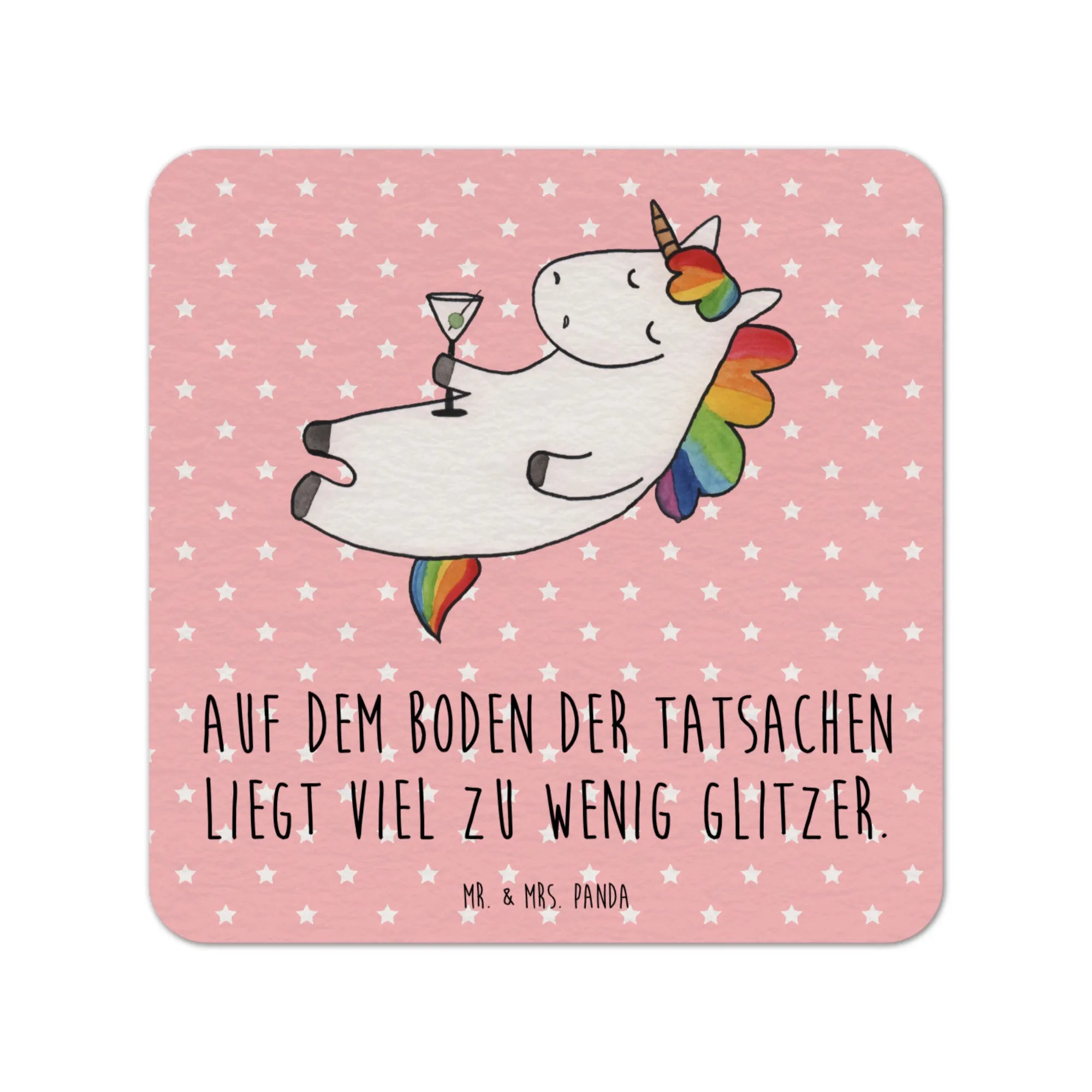 Du suchst das perfekte Geschenk für einen Geburtstag oder einen unvergesslichen Abend mit deinen Freunden? Dann sind die Bierdeckel "Einhorn Cocktail" aus der bezaubernden Einhorn-Kollektion von Mr. & Mrs. Panda genau das Richtige für dich! Diese wunderschönen quadratischen Bierdeckel, die mit dem spritzigen Slogan "Auf dem Boden der Tatsachen liegt viel zu wenig Glitzer" bedruckt sind, bringen nicht nur Farbe und Spaß auf deinen Tisch, sondern sind auch ein ganz besonderes Highlight für jeden Anlass.