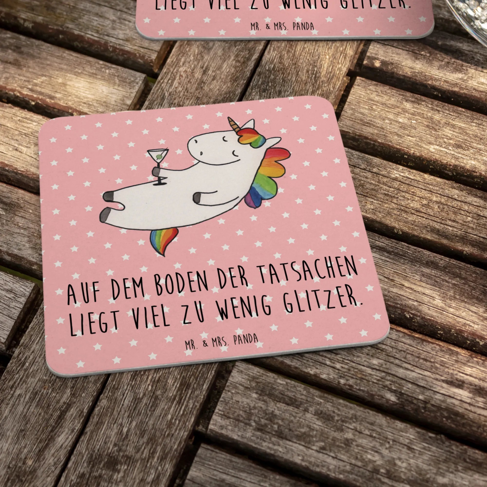 Suchst du nach dem perfekten Gastgeschenk für deine Hochzeit oder nach einer stylischen Tischdeko, die jedem Feierlichkeiten den richtigen Glitzer verleiht? Dann bist du hier genau richtig! Die Bierdeckel von Mr. & Mrs. Panda sind nicht nur praktische Helfer, sondern auch echte Hingucker auf jeder Party. Besonders das Motiv "Einhorn Cocktail" aus der Einhorn-Kollektion wird deine Gäste zum Lächeln bringen! Das süße Einhorn, das zufrieden mit einem bunten Cocktail in der Hand posiert, ist mehr als nur ein Bierdeckel - es ist ein Symbol für Vergnügen und Unbeschwertheit.