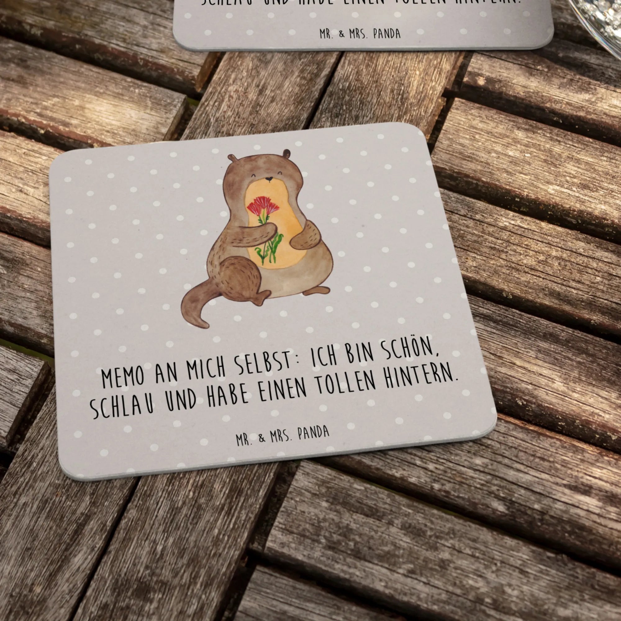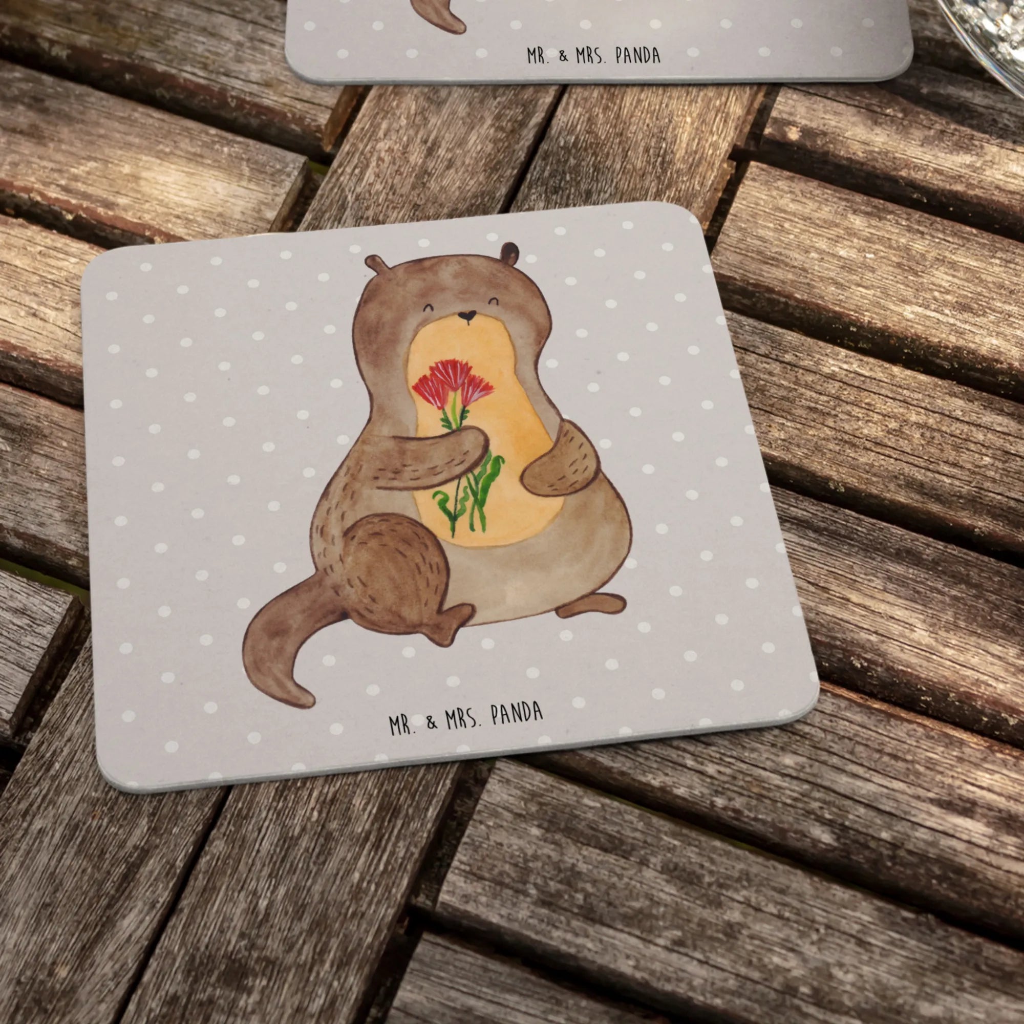 Das perfekte Geschenk für alle Otter-Fans! Unsere Bierdeckel mit dem süßen Motiv "Otter Blumenstrauß" aus der beliebten Otter-Kollektion von Mr. & Mrs. Panda sind nicht nur praktische Helfer, die deinen Tisch vor unschönen Abdrücken und Kratzern schützen, sondern auch ein stylisches Highlight für jede Tischdekoration.