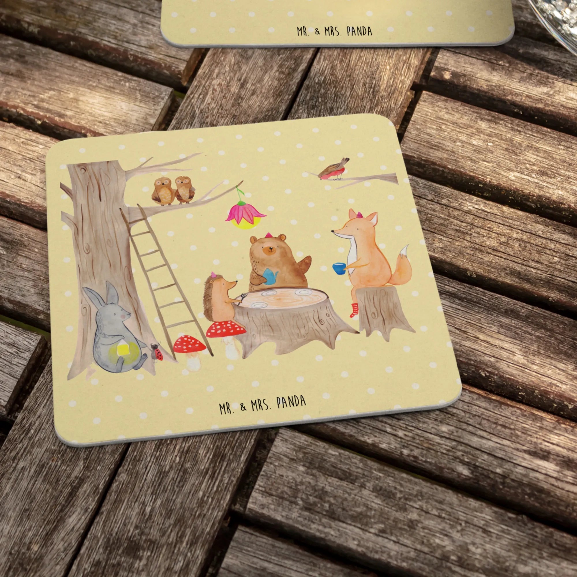 Bierdeckel mit den zauberhaften Waldtieren von Mr. & Mrs. Panda sind das perfekte Accessoire für dein nächstes Picknick oder jede Feier! Mit einem liebevoll gestalteten Design, das Füchse, Eichhörnchen, Hasen und andere süße Waldtiere zeigt, bietet dieser quadratische Bierdeckel nicht nur Schutz gegen Abdrücke und Kratzer, sondern bringt auch eine fröhliche Stimmung an deinen Tisch. Die liebevollen Illustrationen sind in zarten Pastellfarben gehalten und strahlen Lebensfreude aus.