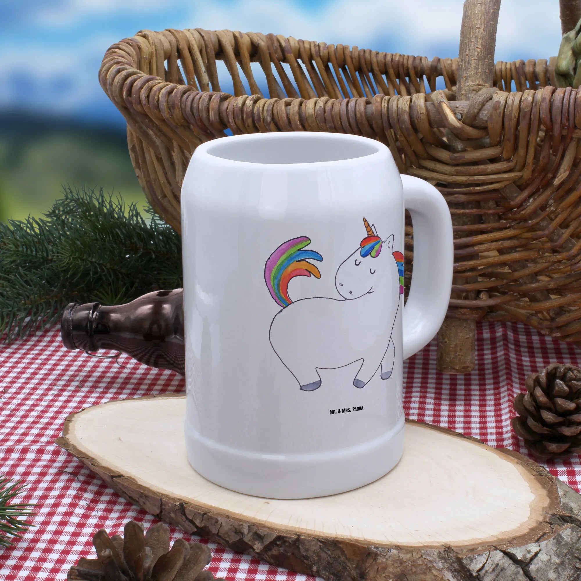 Der exquisite Bierkrug aus der Einhorn-Kollektion von Mr. & Mrs. Panda ist nicht nur ein Trinkgefäß, sondern ein echtes Stück Lebensfreude! Mit dem liebevoll gestalteten Motiv eines stolzierenden Einhorns wirst du sofort in die zauberhafte Welt der Fantasie entführt. Dieser 0,5 Liter fassende Bierkrug ist aus robustem Steingut gefertigt und verspricht durch seine seidenglänzende Lasierung nicht nur eine ansprechende Optik, sondern auch eine hohe Widerstandsfähigkeit im Alltag.