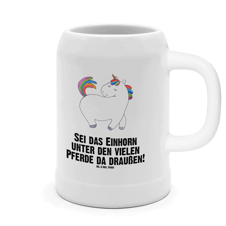 Der Spruch "Sei das Einhorn unter den vielen Pferden da draußen!" bringt die charakteristische Lebensfreude und Individualität zum Ausdruck, die in jedem von uns steckt. Ob für den abendlichen Biergartenbesuch oder das nächste Grillfest – dieser Krug begeistert in jeder Situation.