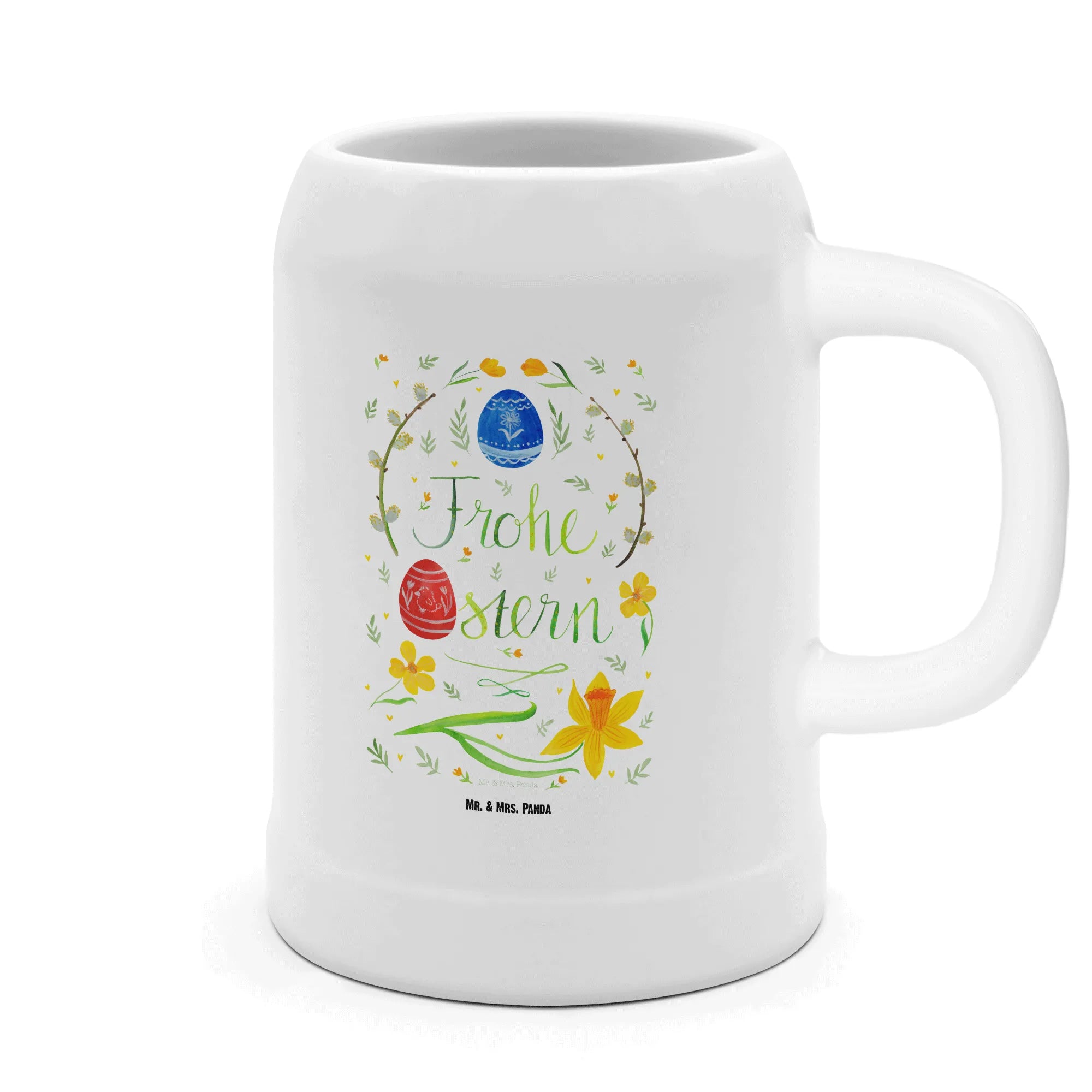 Der Bierkrug "Frohe Ostern" von Mr. & Mrs. Panda ist das perfekte Geschenk für alle, die Ostern in vollen Zügen genießen möchten. Mit seinen entzückenden Aquarellmotiven von Blumen und Eiern versprüht dieser rustikale Steingutkrug pure Frühlingsfreude.