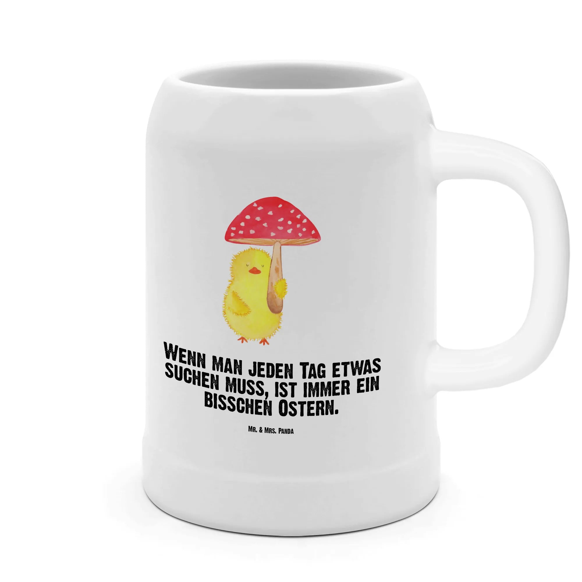 Der Bierkrug Küken Fliegenpilz aus der Ostern-Kollektion von Mr. & Mrs. Panda ist das perfekte Geschenk für all jene, die Ostern lieben und das fröhliche Flair dieser besonderen Zeit schätzen. Mit einer Füllmenge von 500 ml und gefertigt aus robustem Steingut, bietet dieser Krug nicht nur ausreichend Platz für dein Lieblingsbier, sondern bringt auch einen Hauch von Nostalgie und Niedlichkeit in jeden Schluck. Das zauberhafte Motiv des Küken mit einem roten Fliegenpilz in der Hand kombiniert auf spielerische Art und Weise die Fröhlichkeit des Frühlings mit einem charmanten Twist.