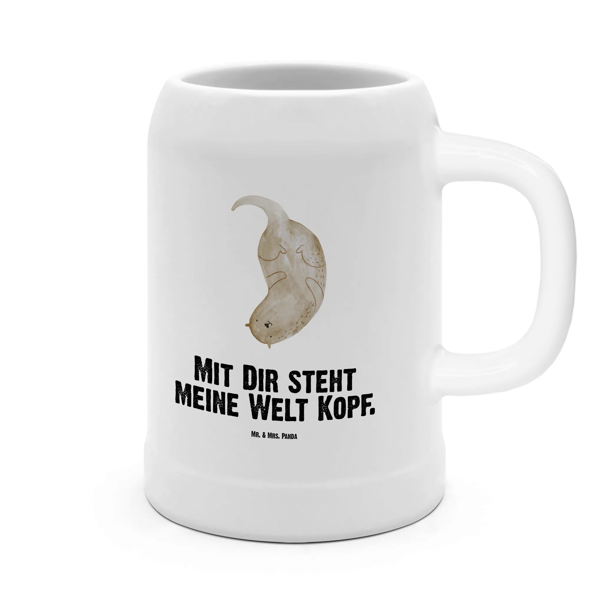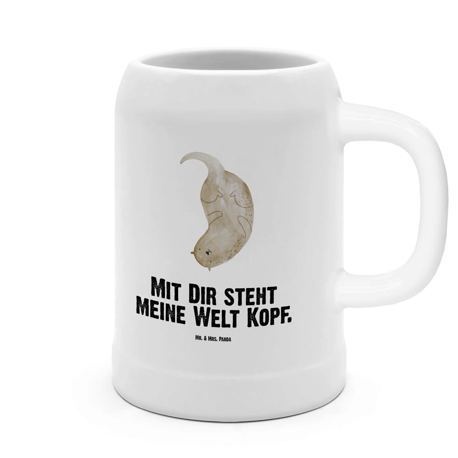 Mit dem Bierkrug 'Otter kopfüber' aus der Otter-Kollektion von Mr. & Mrs. Panda bringst Du ein Stück Natur in Dein Zuhause! Dieser 500 ml große Bierkrug aus robustem Steingut ist perfekt für alle, die die Biergartenstimmung auch daheim genießen möchten.