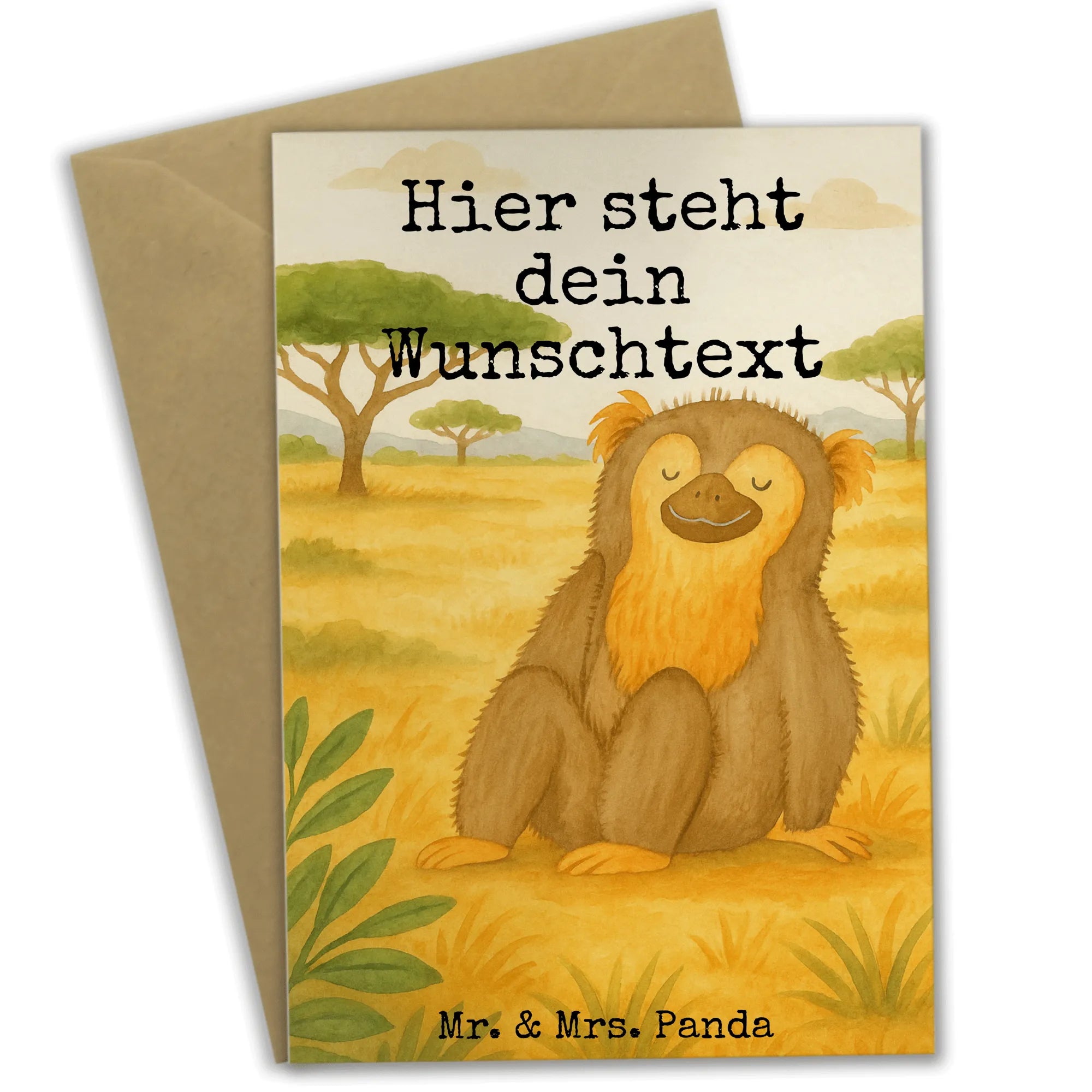 Gestalte deine Grüße einzigartig mit der personalisierten Grußkarte von Mr. & Mrs. Panda! Diese bezaubernde Karte hat eine Größe von 148 mm x 105 mm und besteht aus hochwertigem Karton, der langlebig ist. Auf der Vorderseite der Karte kannst du deinen Wunschnamen oder Wunschtext hinzufügen, während die Innenseite blanko bleibt für deine kreativen Gedanken. Die Karte ist perfekt für jeden feierlichen Anlass, sei es ein Geburtstag, eine Hochzeit oder einfach nur um jemandem zu zeigen, wie wichtig er dir ist. Die glänzend veredelte Außenseite verleiht der Karte einen eleganten Touch, und der edle Umschlag sorgt dafür, dass dein Gruß stilvoll überreicht wird.