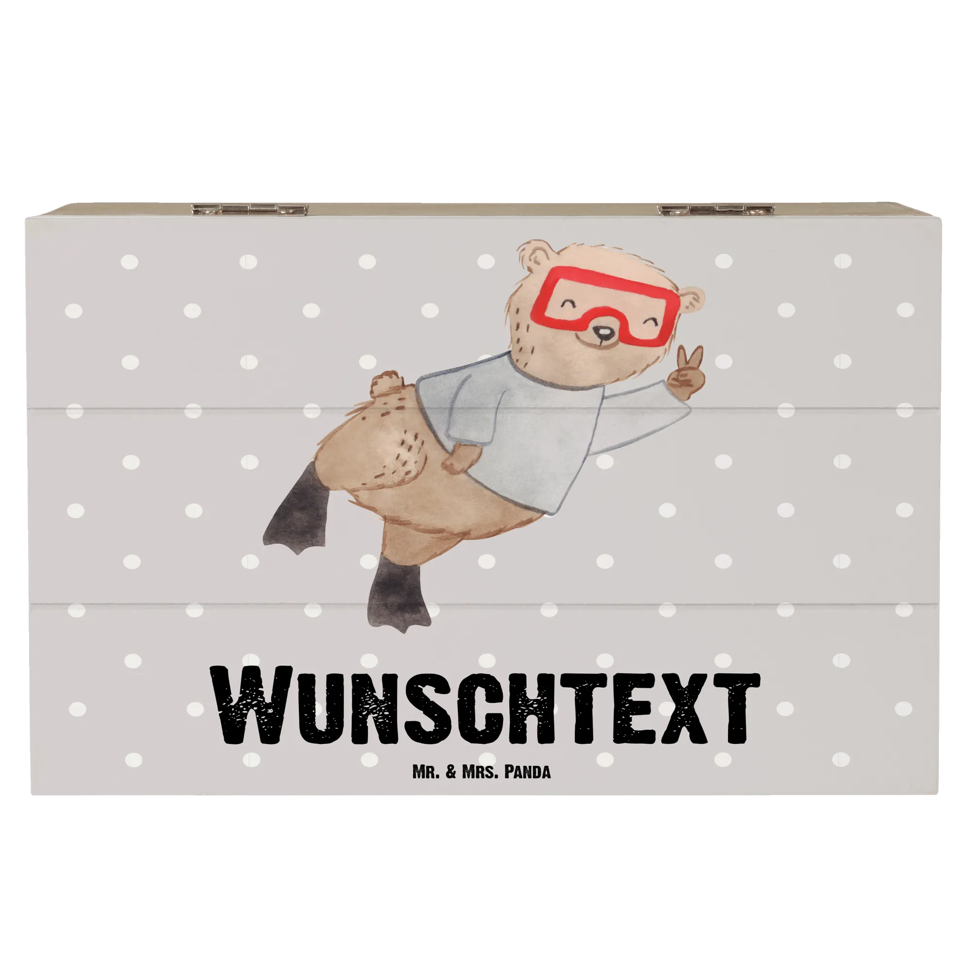 Entdecke die hübsche personalisierte Holzkiste "Bär Tauchen Tage" von Mr. & Mrs. Panda, die jedes Herz höher schlagen lässt! Diese wundervolle Kiste ist mehr als nur ein Aufbewahrungsort; sie ist ein Ort für deine ganz persönlichen Schätze! Ob als Erinnerungskiste für die besonderen Feierlichkeiten wie Kommunion oder Konfirmation, oder als kreative Geschenkbox für Sportbegeisterte und Hobby-Fanatiker - sie passt zu jedem Anlass.