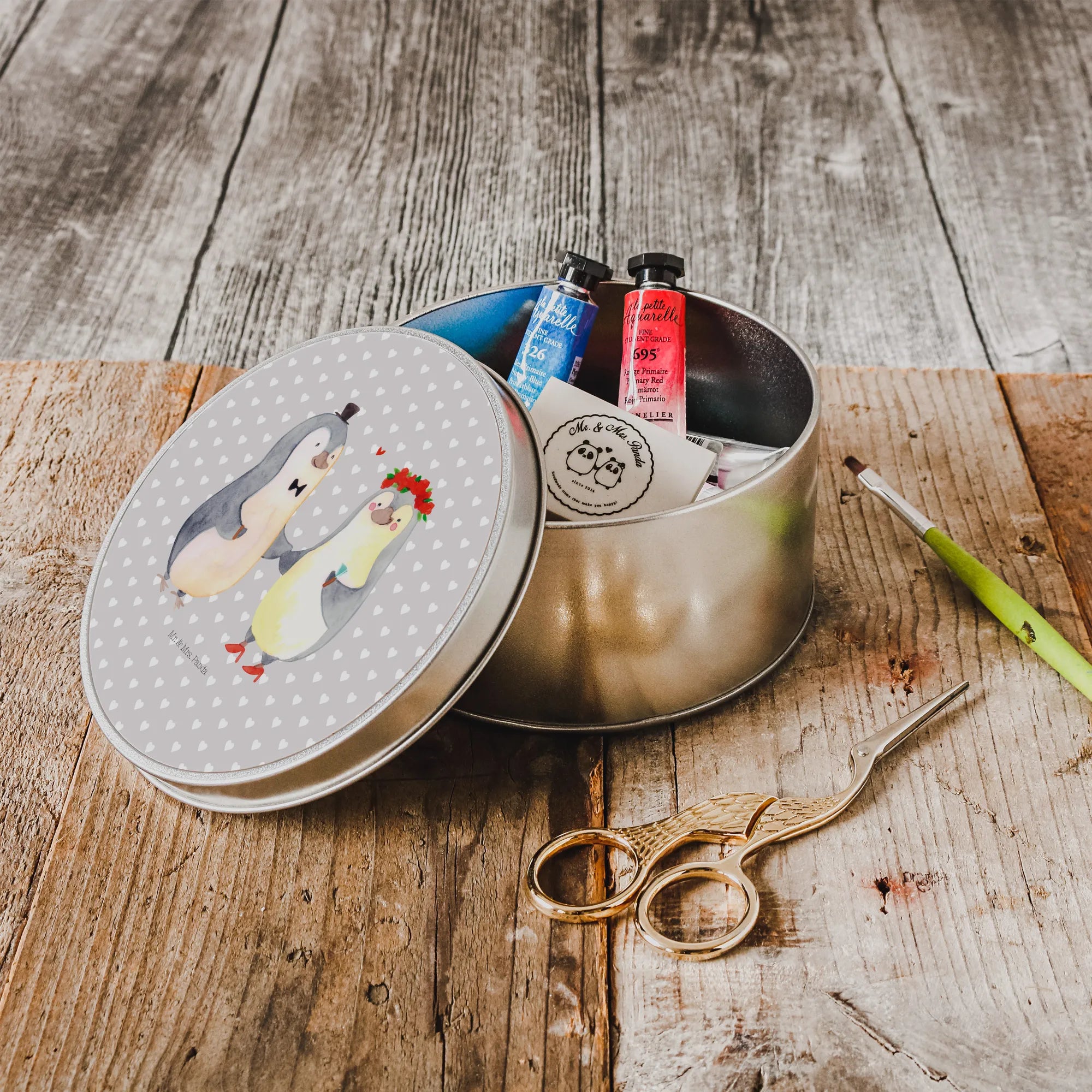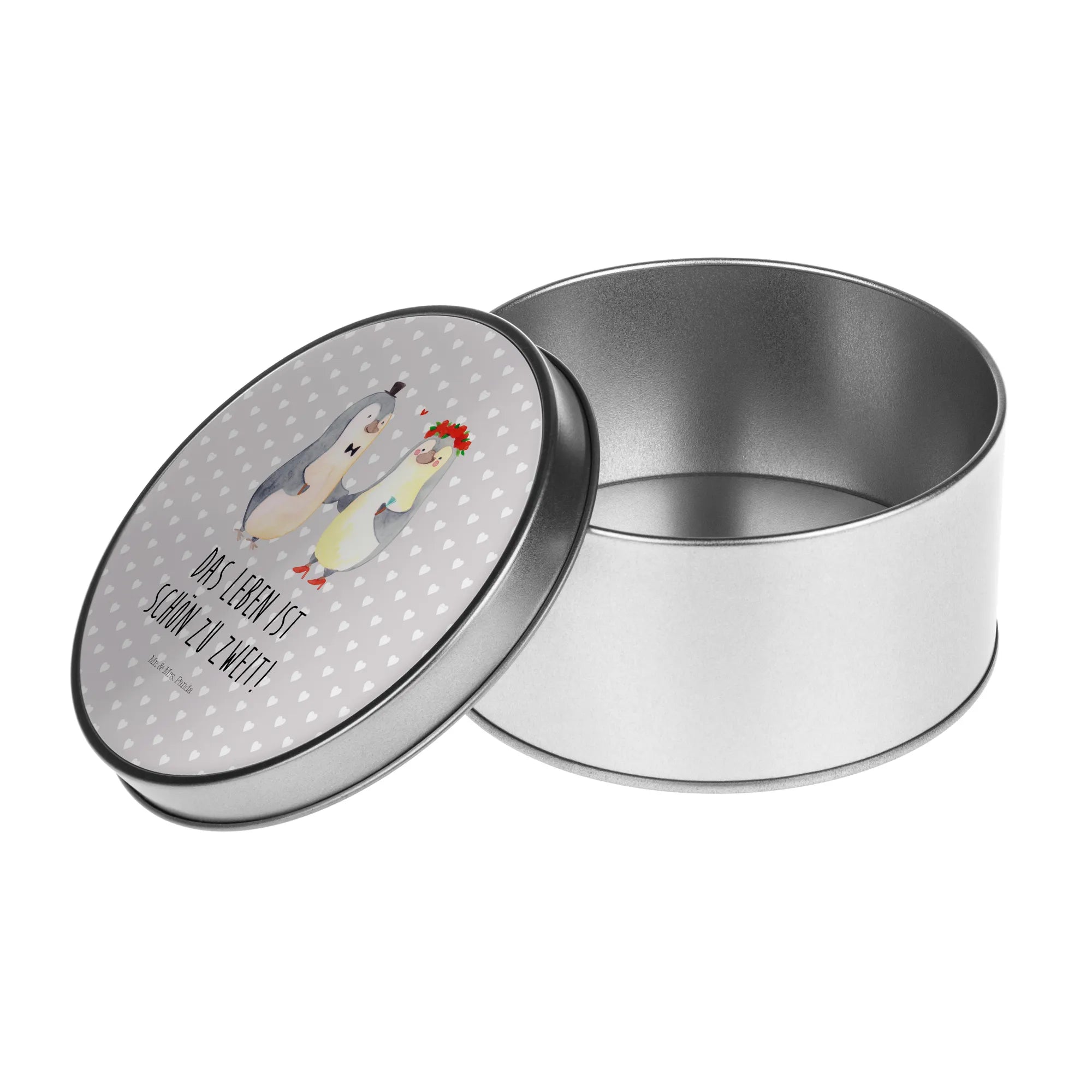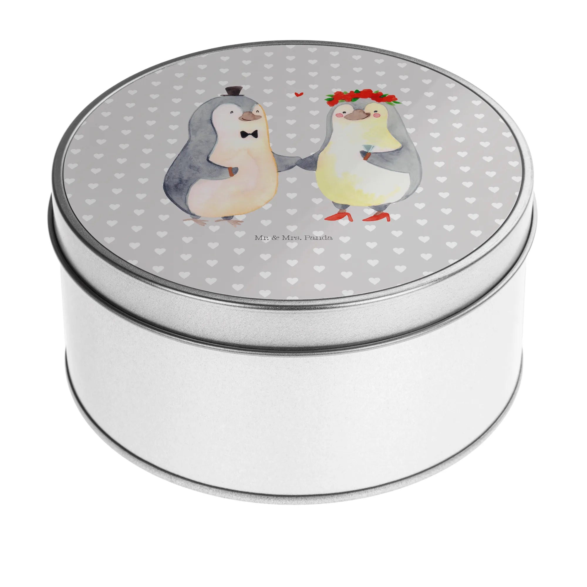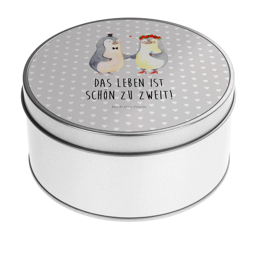 Die runde Blechdose mit dem liebevollen Motiv Pinguin Heirat von Mr. & Mrs. Panda ist das perfekte Geschenk für Paare, die ihre Liebe feiern möchten. Ob zum Verlobungsantrag, Hochzeitstag oder Jahrestag – diese stilvolle Blechdose ist ein wunderschönes Zeichen der Zuneigung und Verbundenheit.